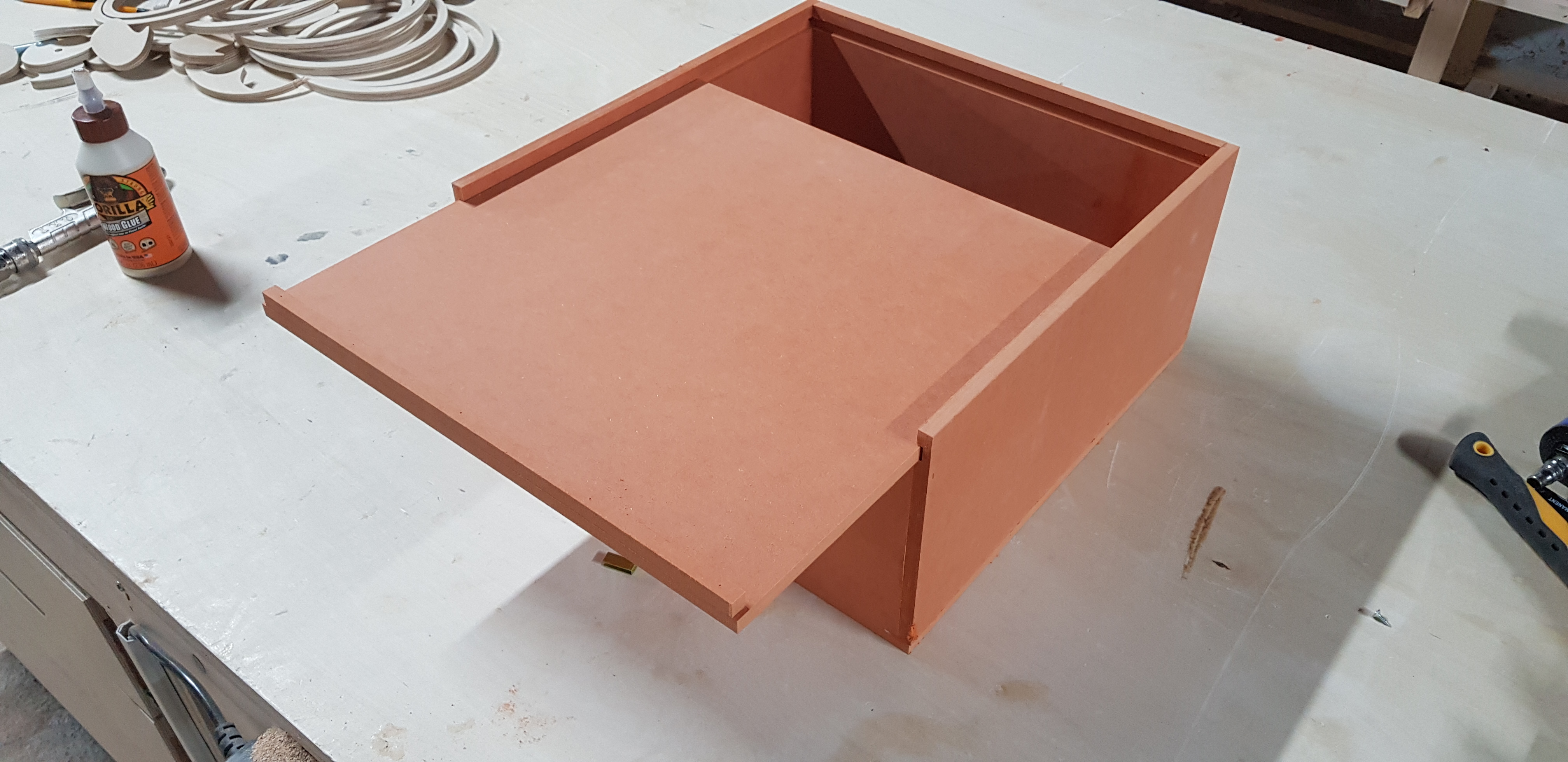 네모난 박스를 만들었는데요, 뚜껑을 슬라이딩해서 닫으면 이렇게 깔끔한 모습입니다.