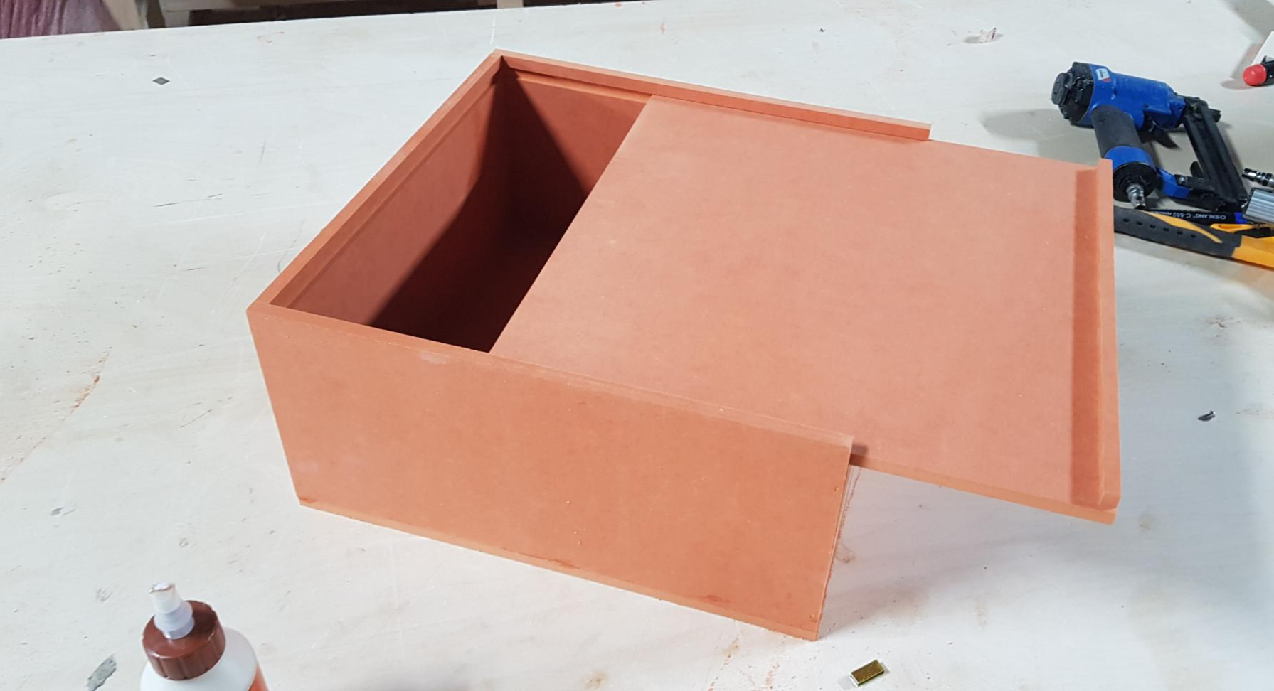 네모난 박스를 만들었는데요, 뚜껑을 슬라이딩해서 닫으면 이렇게 깔끔한 모습입니다.