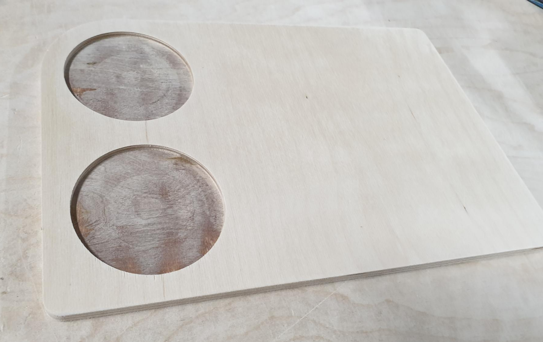 두 가지 디자인으로 제작 요청을 해주셨는데요~ 먼저 첫번째 디자인은 두개의 구멍이 뚤려있는 모양입니다.