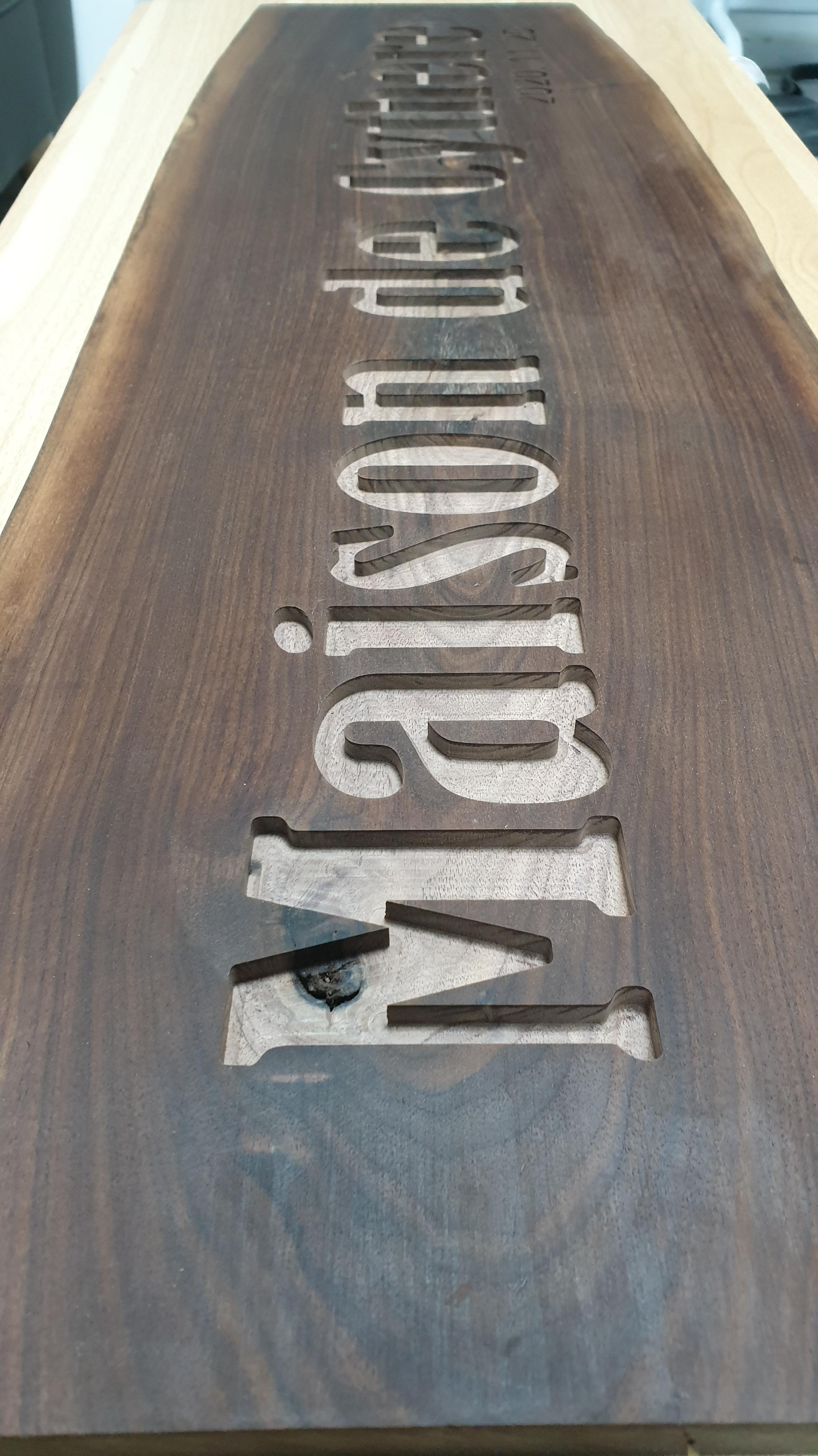 완성된 간판을 클로징 해보면, 이렇게 깔끔하게 각인된 것을 확인하실 수 있습니다.