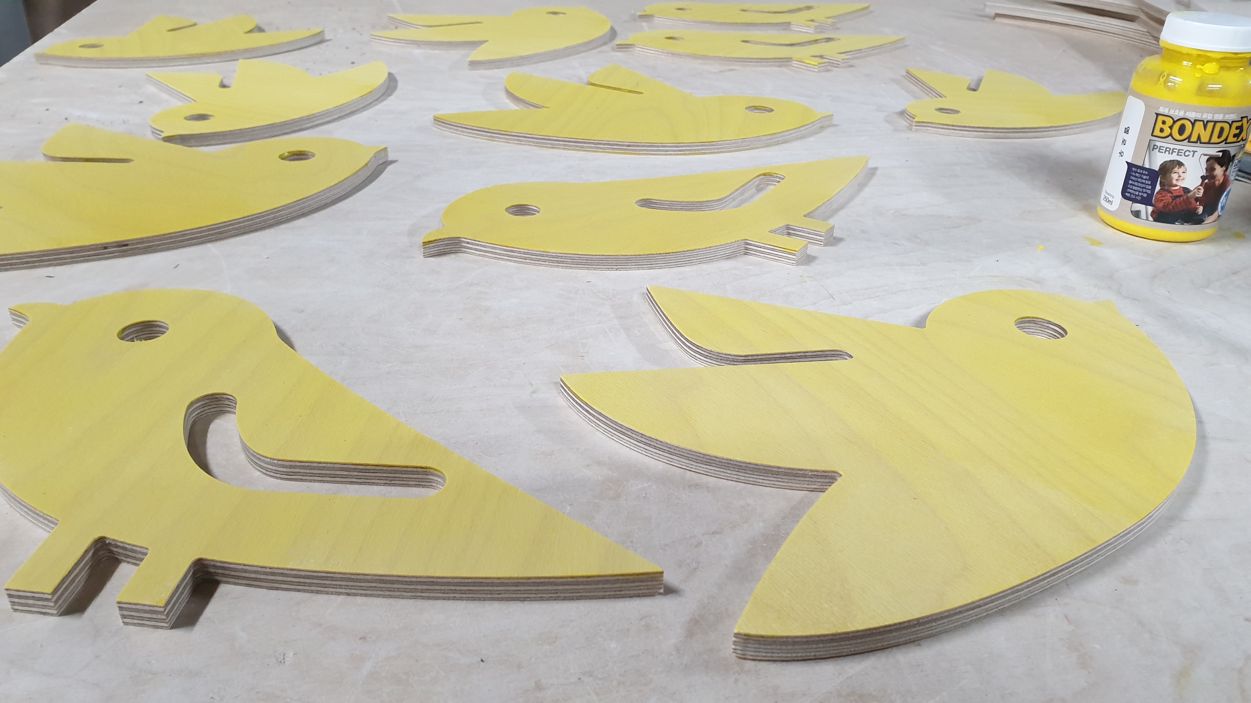 새 장식에는 수성스테인 옐로우 컬러를 입혀주었어요~