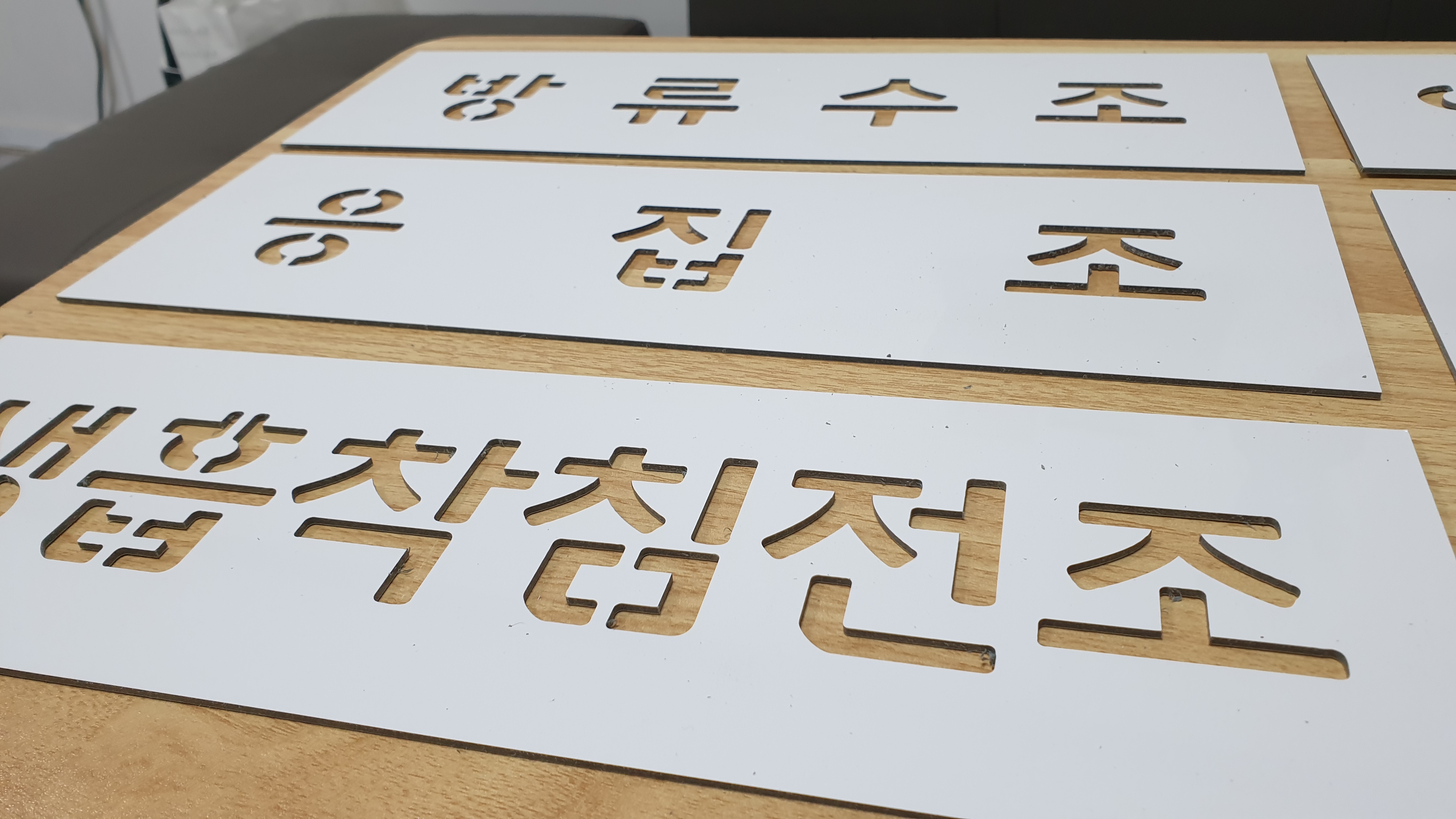 바로 락카 글자 마킹판이랍니다~ 글자를 도색하기 위해 쓰여지는 도구인데요!