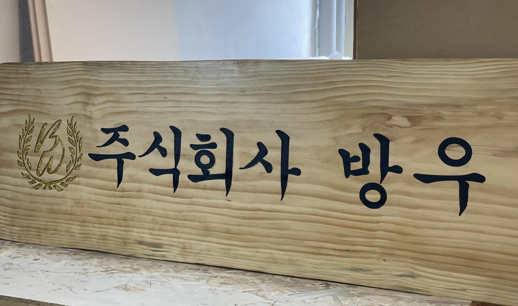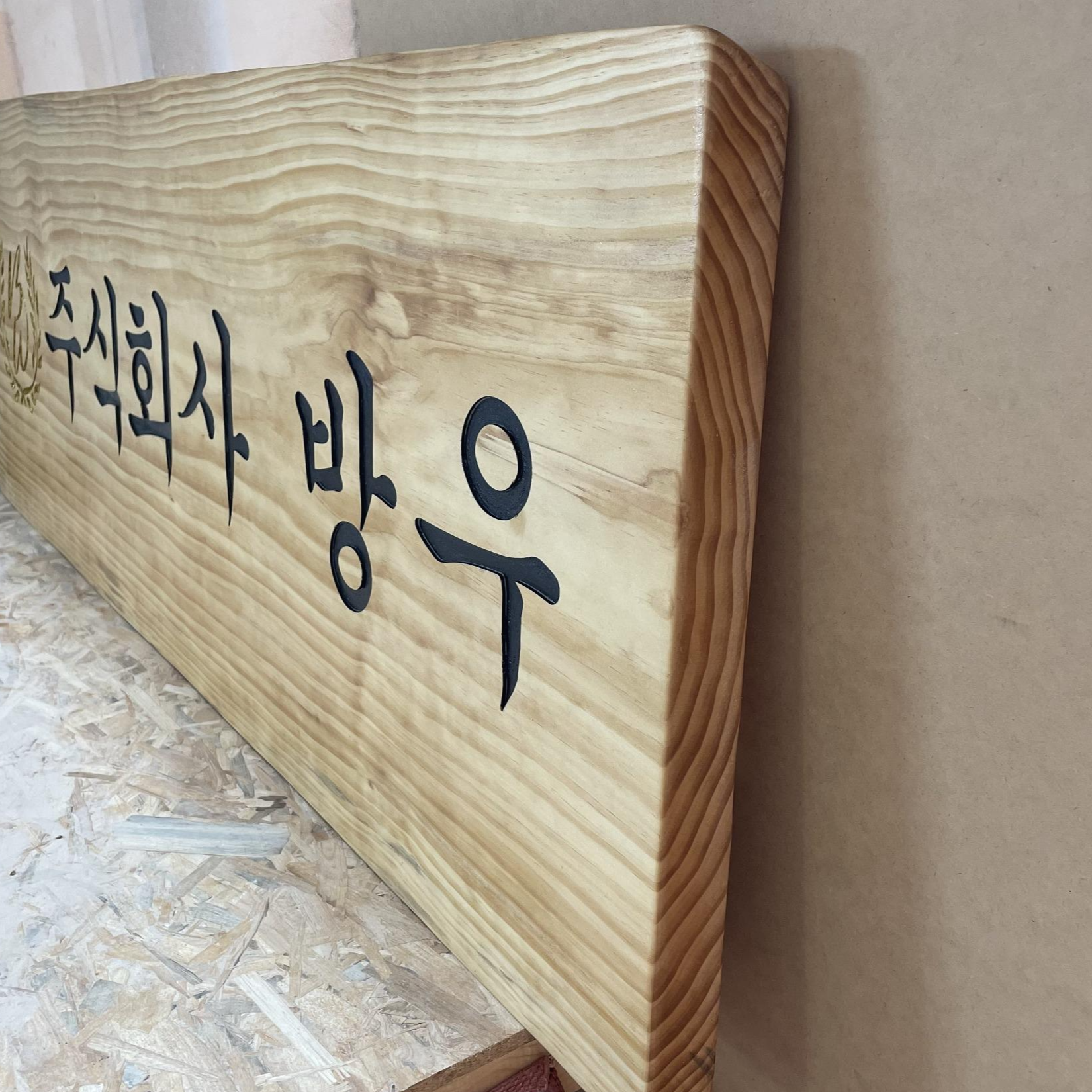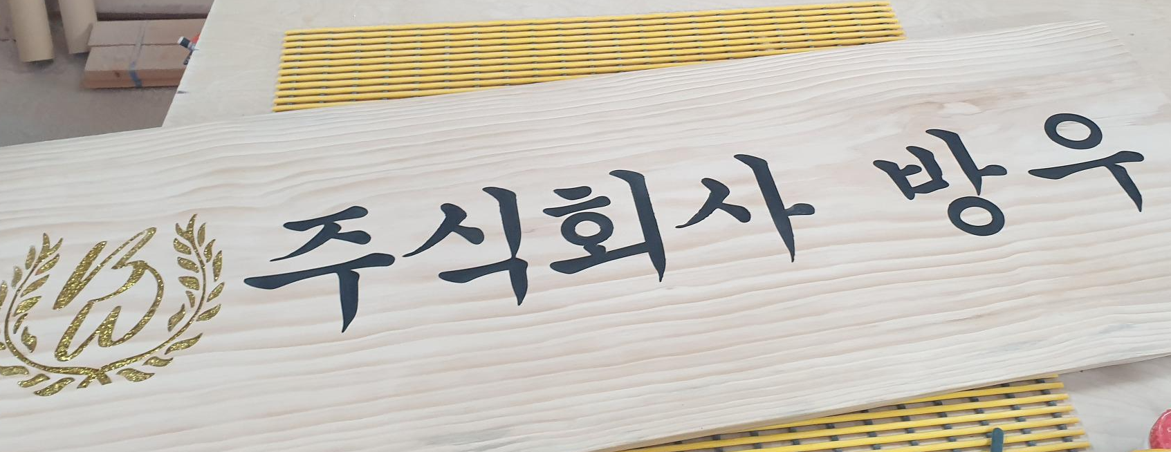 회사의 첫인상을 밝혀주는 역할을 하기때문에 묵직하고 고급진 이미지를 원하신다면 나무로 제작해보시는걸 추천드려요~