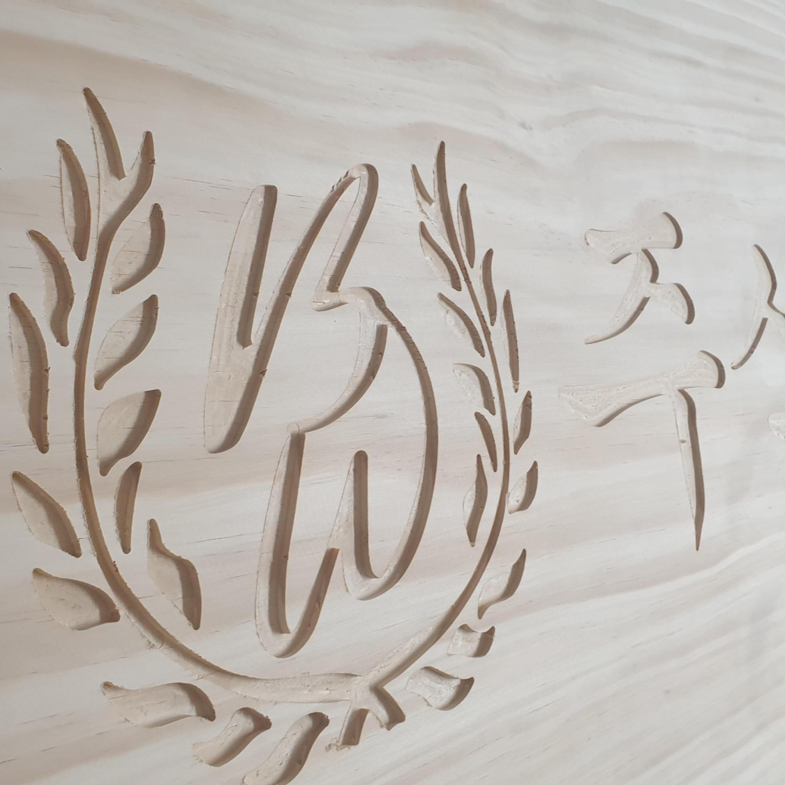 제작로고가 이번 현판의 포인트 인데요~ 한땀한땀 파고 있는 중이랍니다~!