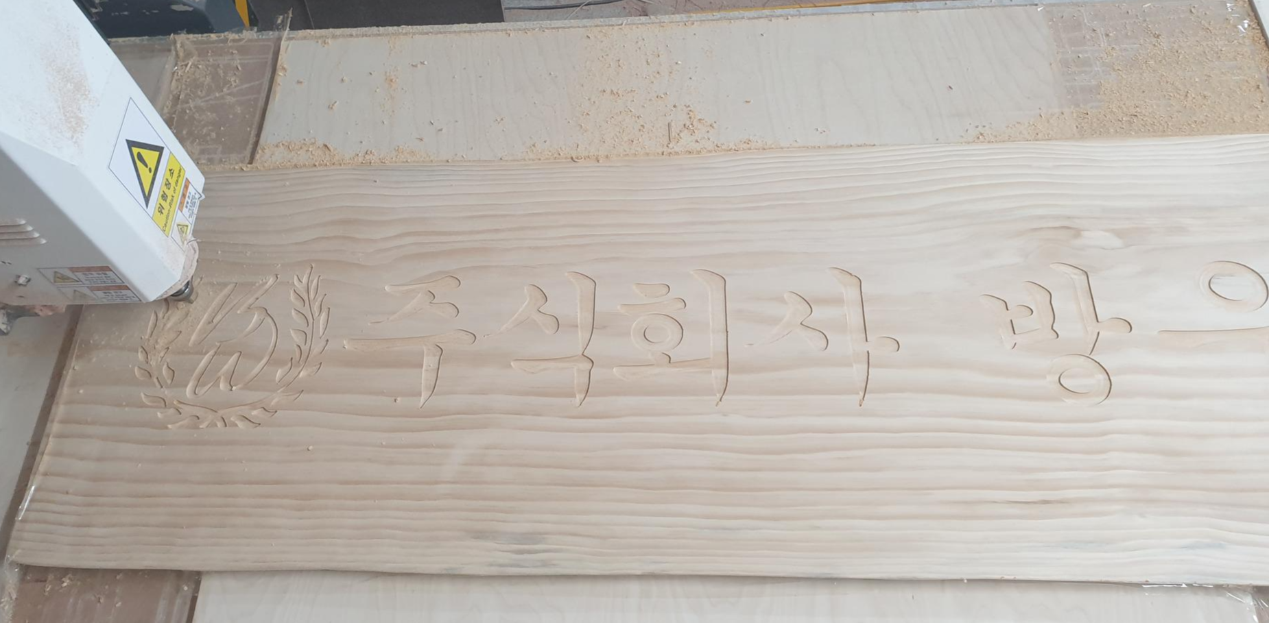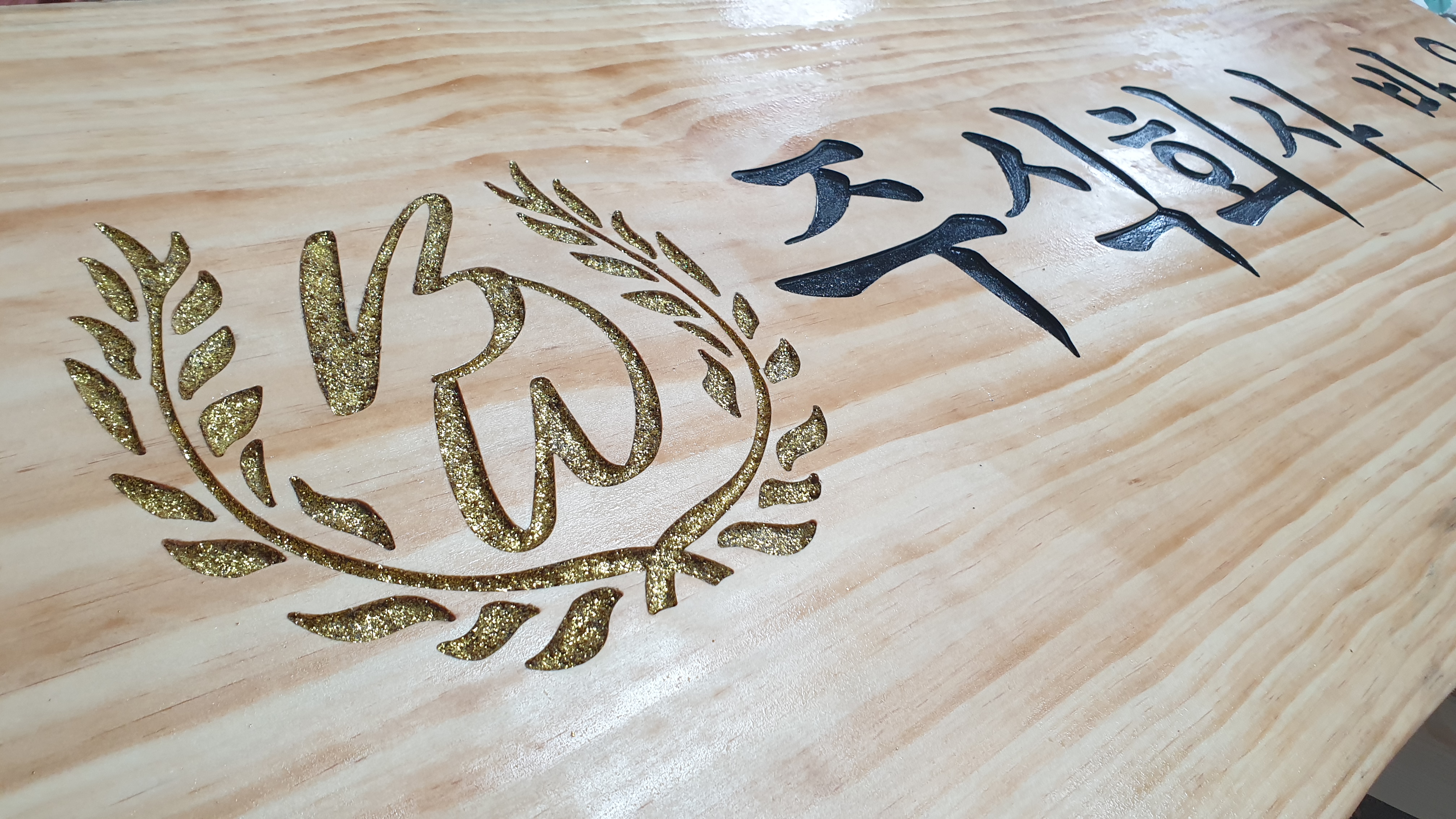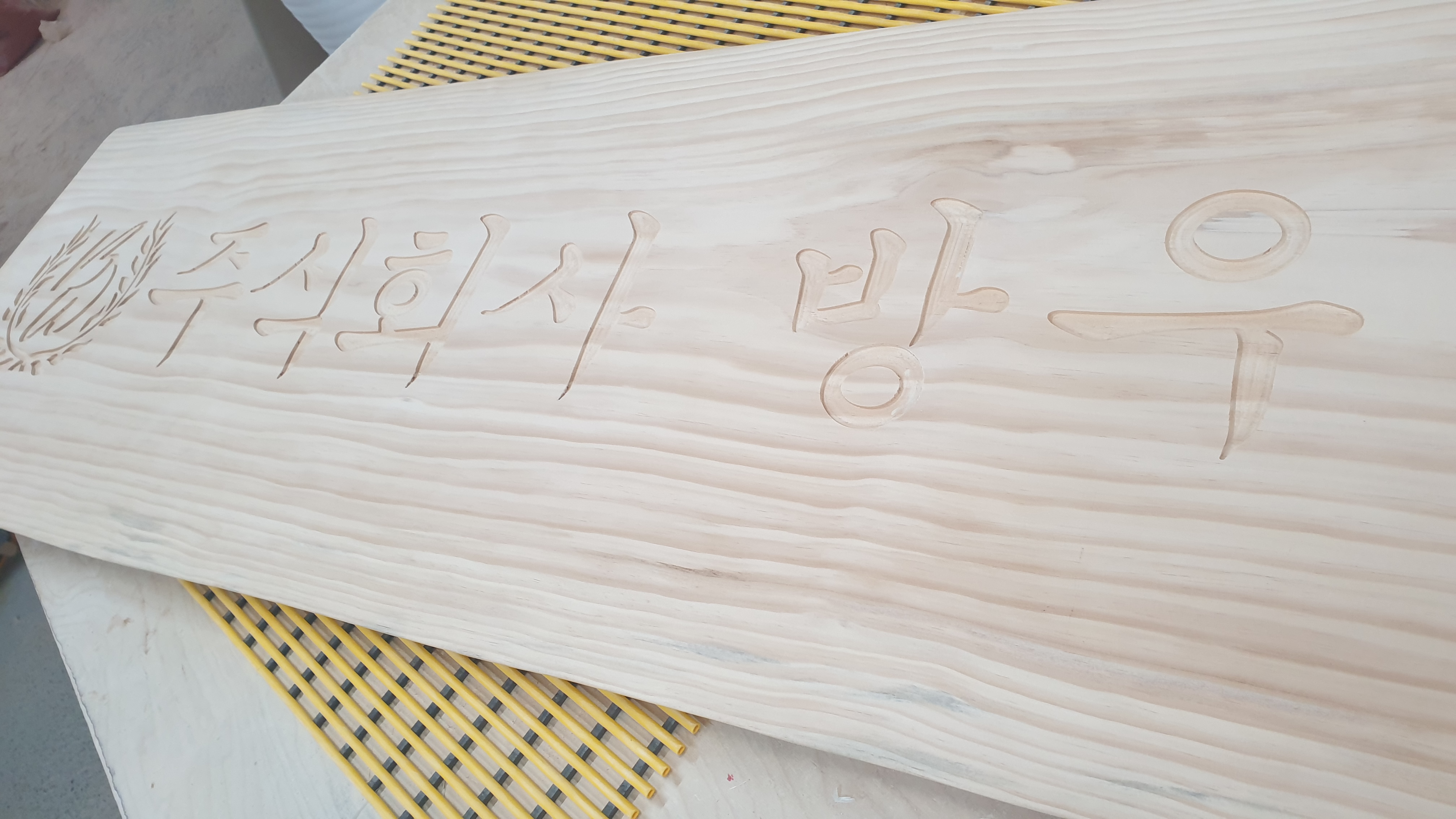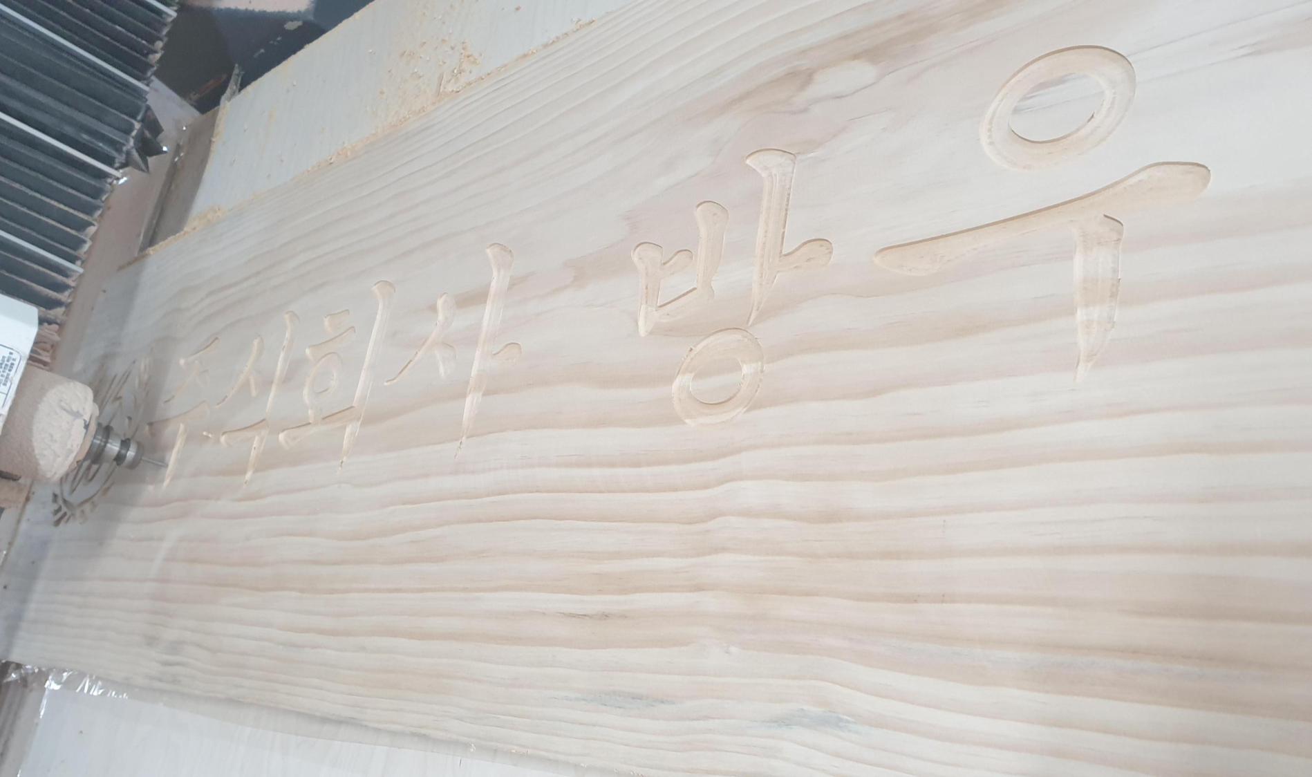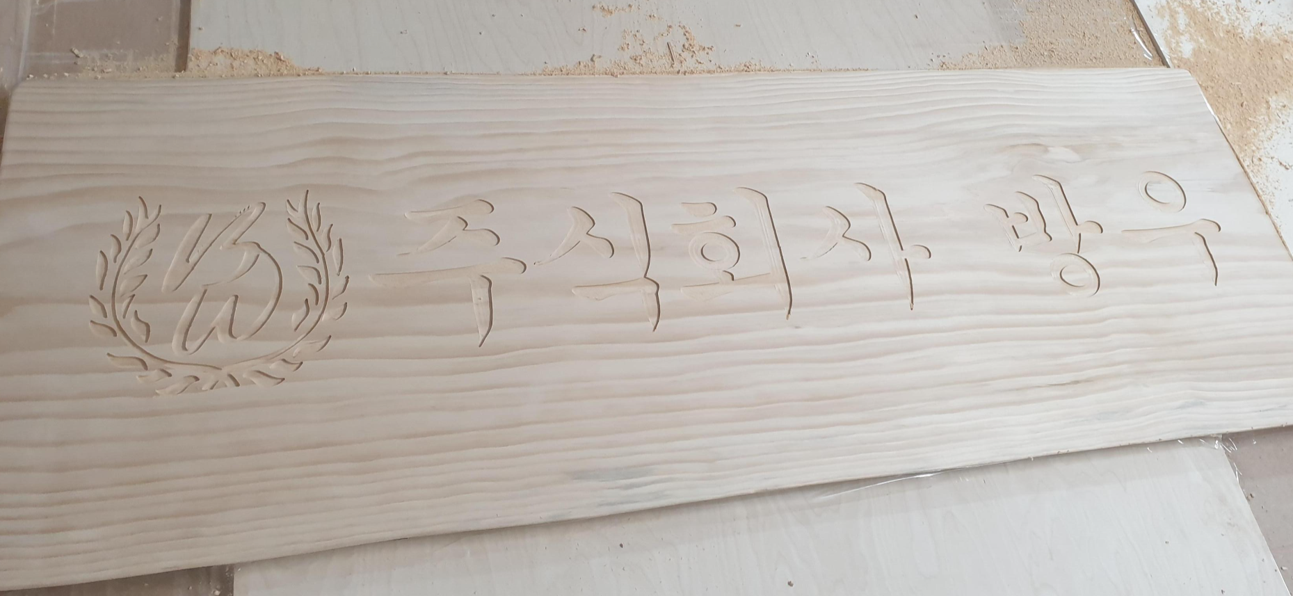 제작로고가 이번 현판의 포인트 인데요~ 한땀한땀 파고 있는 중이랍니다~!