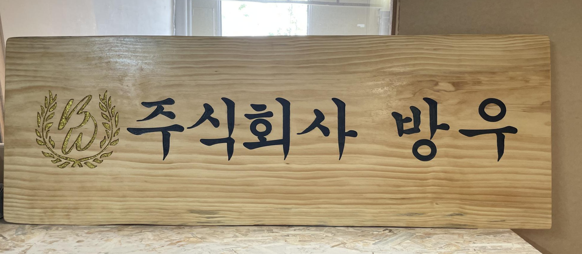 회사의 첫인상을 밝혀주는 역할을 하기때문에 묵직하고 고급진 이미지를 원하신다면 나무로 제작해보시는걸 추천드려요~