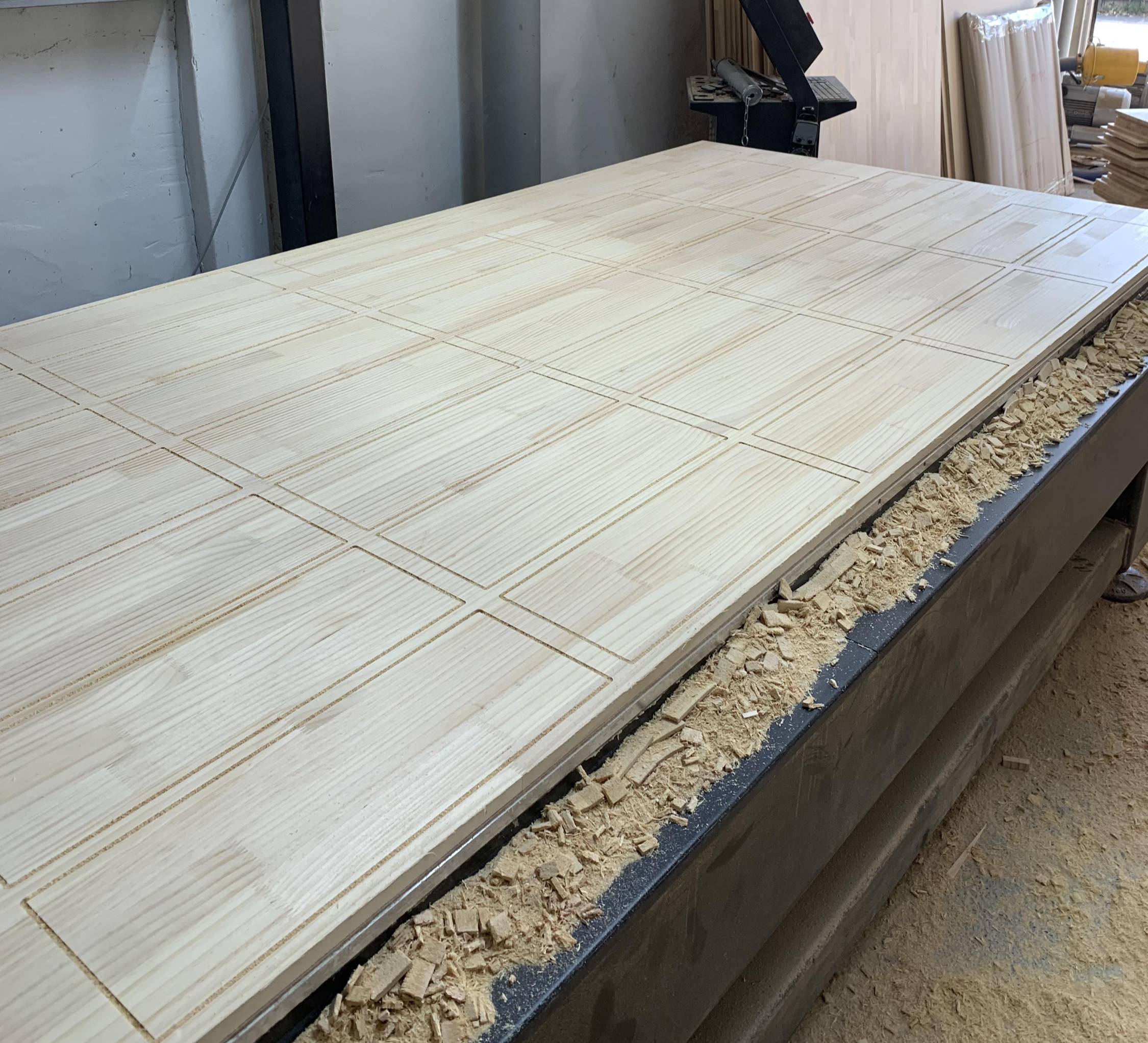 미송집성목 합판을 작은 직사각형 모양으로 절단한 모습이에요. 아주 깔끔하게 잘 되었네요~