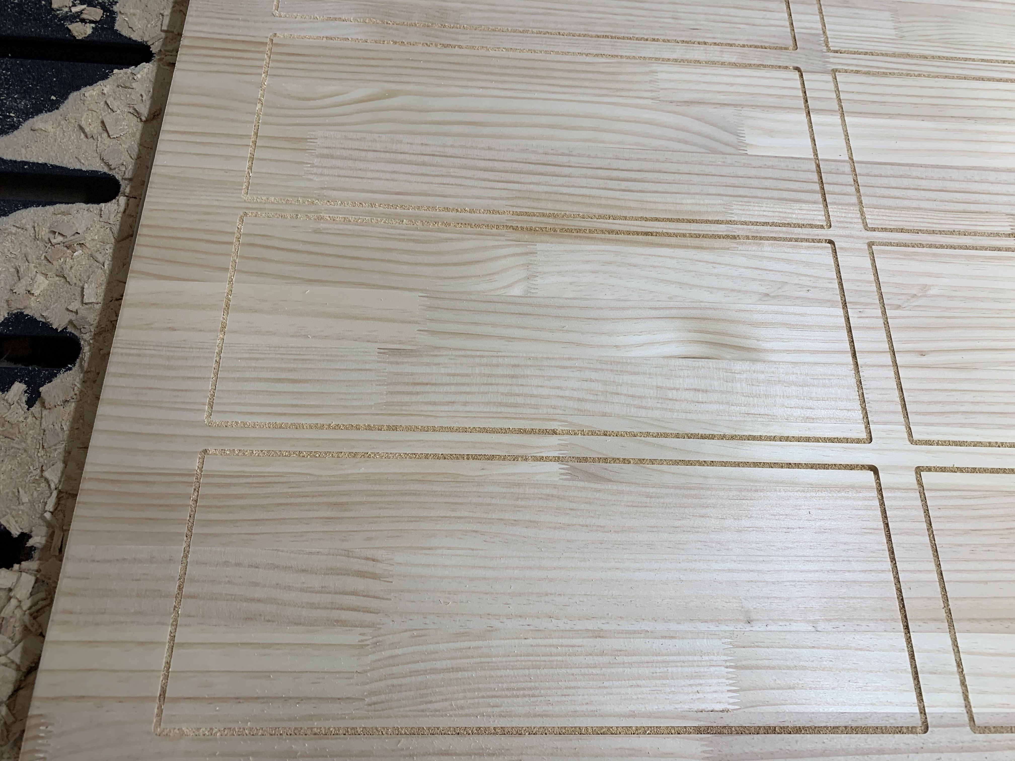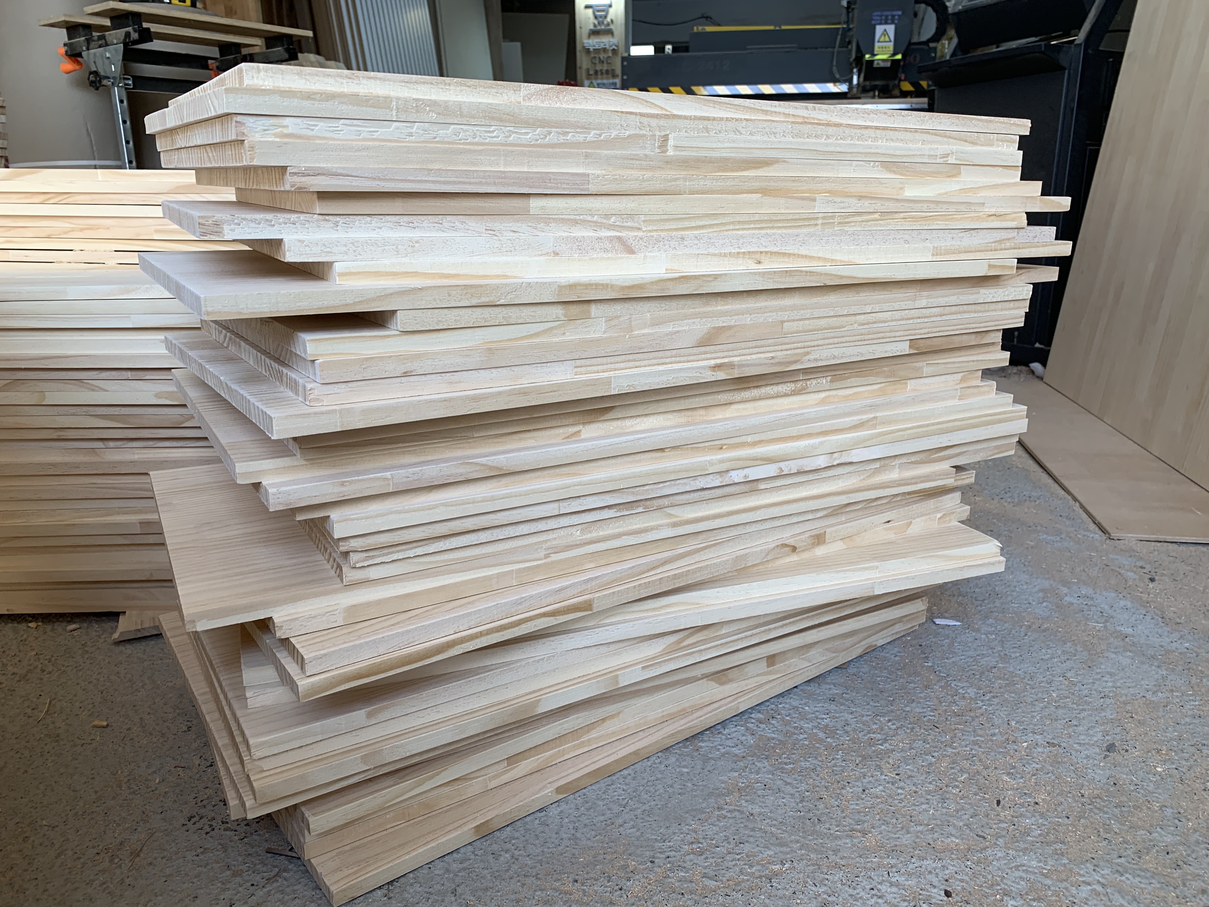 미송집성목 합판을 작은 직사각형 모양으로 절단한 모습이에요. 아주 깔끔하게 잘 되었네요~