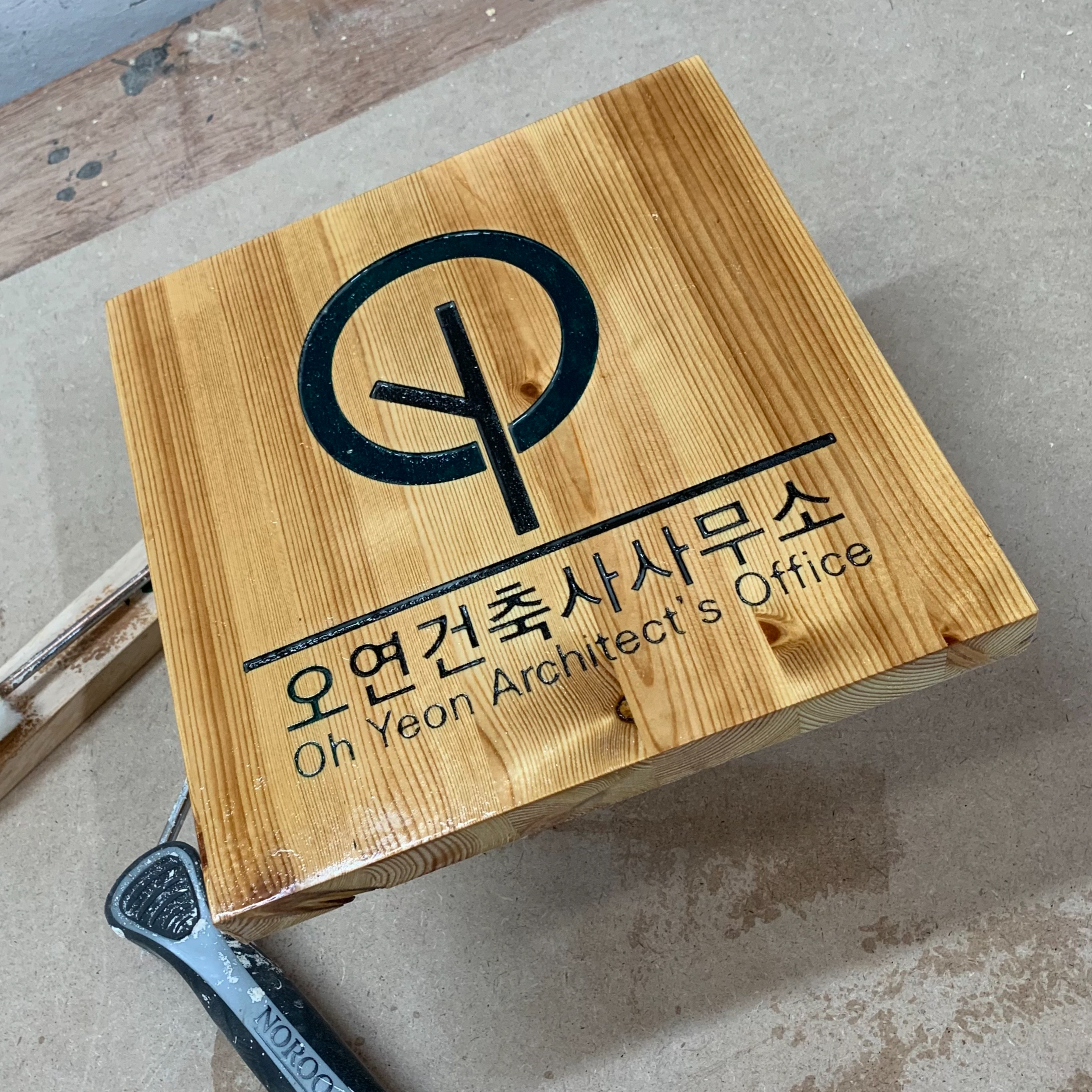 너무 예쁜 나무를 사용해서 건축사무소의 간판을 제작해보았습니다!