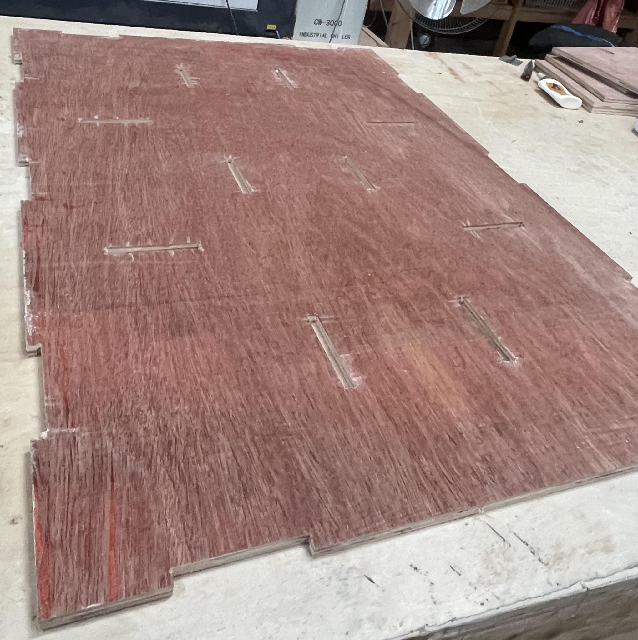 이번 작업에는 붉으스름한 느낌의 베트남 일반합판을 사용하였는데요~