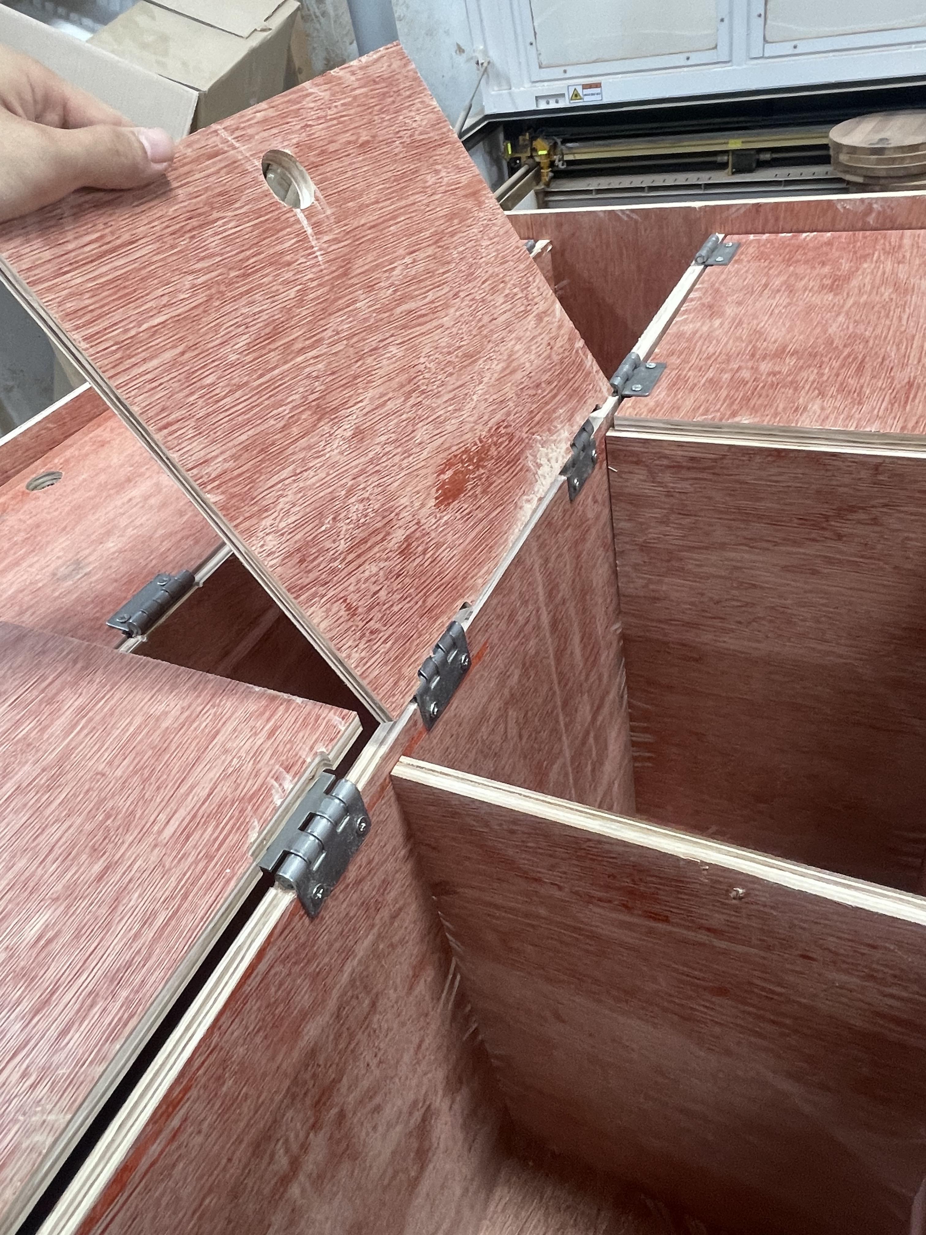이제 미니 경첩을 칸마다 달아주어 칸막이 덮개를 만들어줍니다 ㅎㅎ
