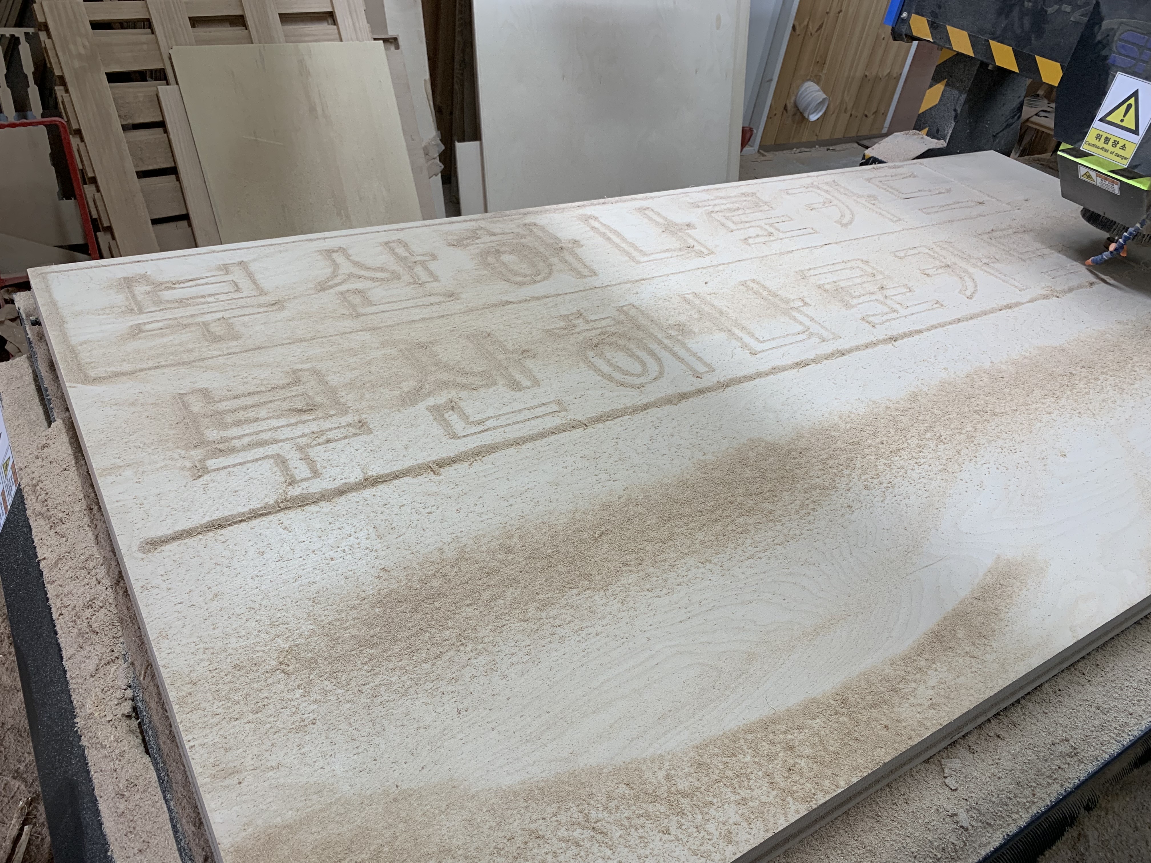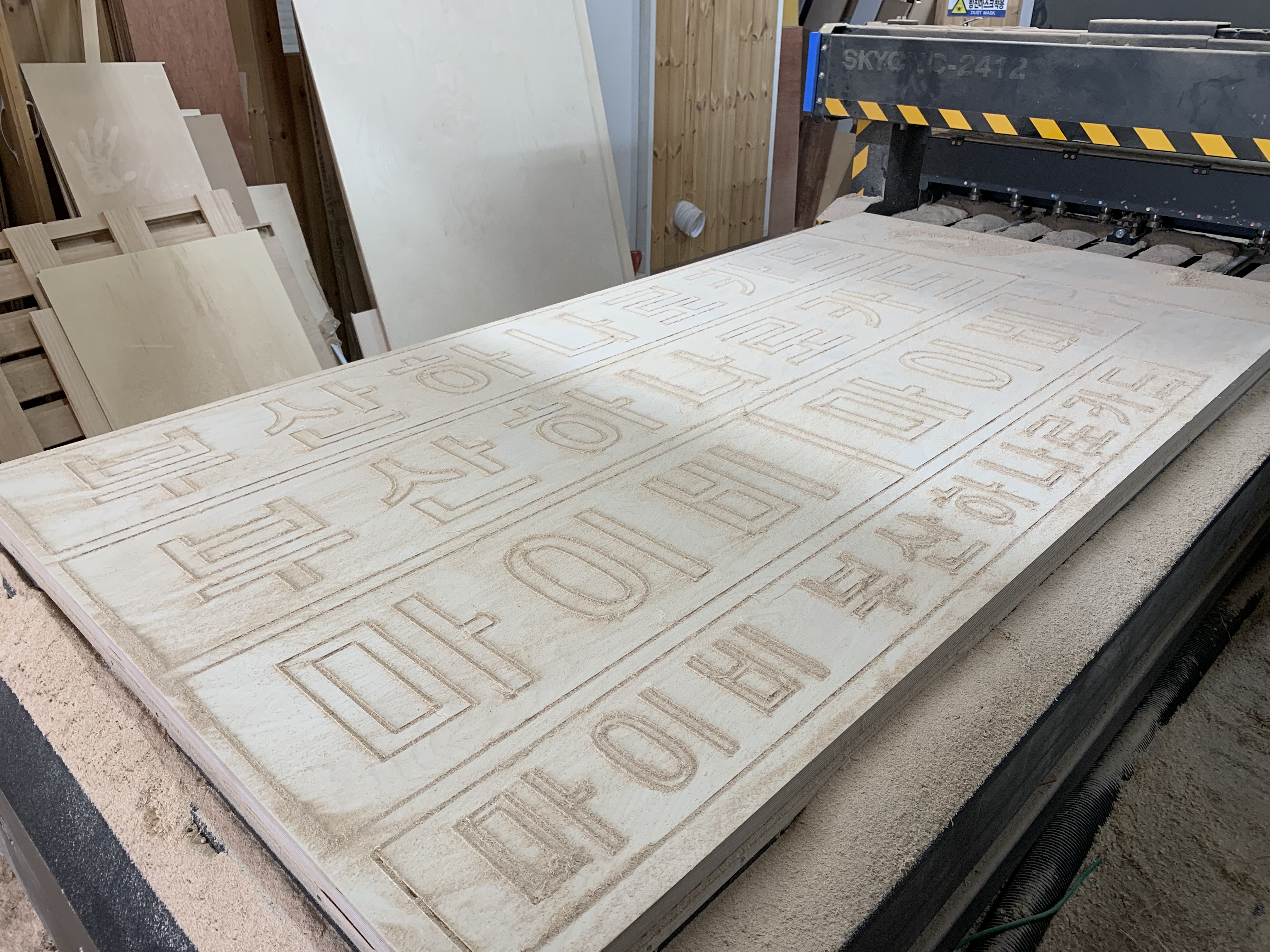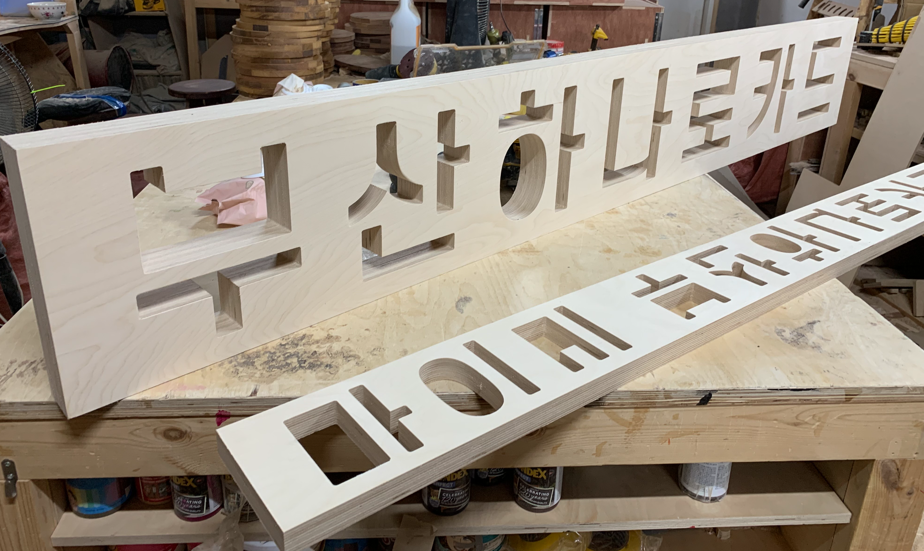 커다란 합판이 가득찰 만큼의 큼직한 글자로 디자인을 하셨습니다!