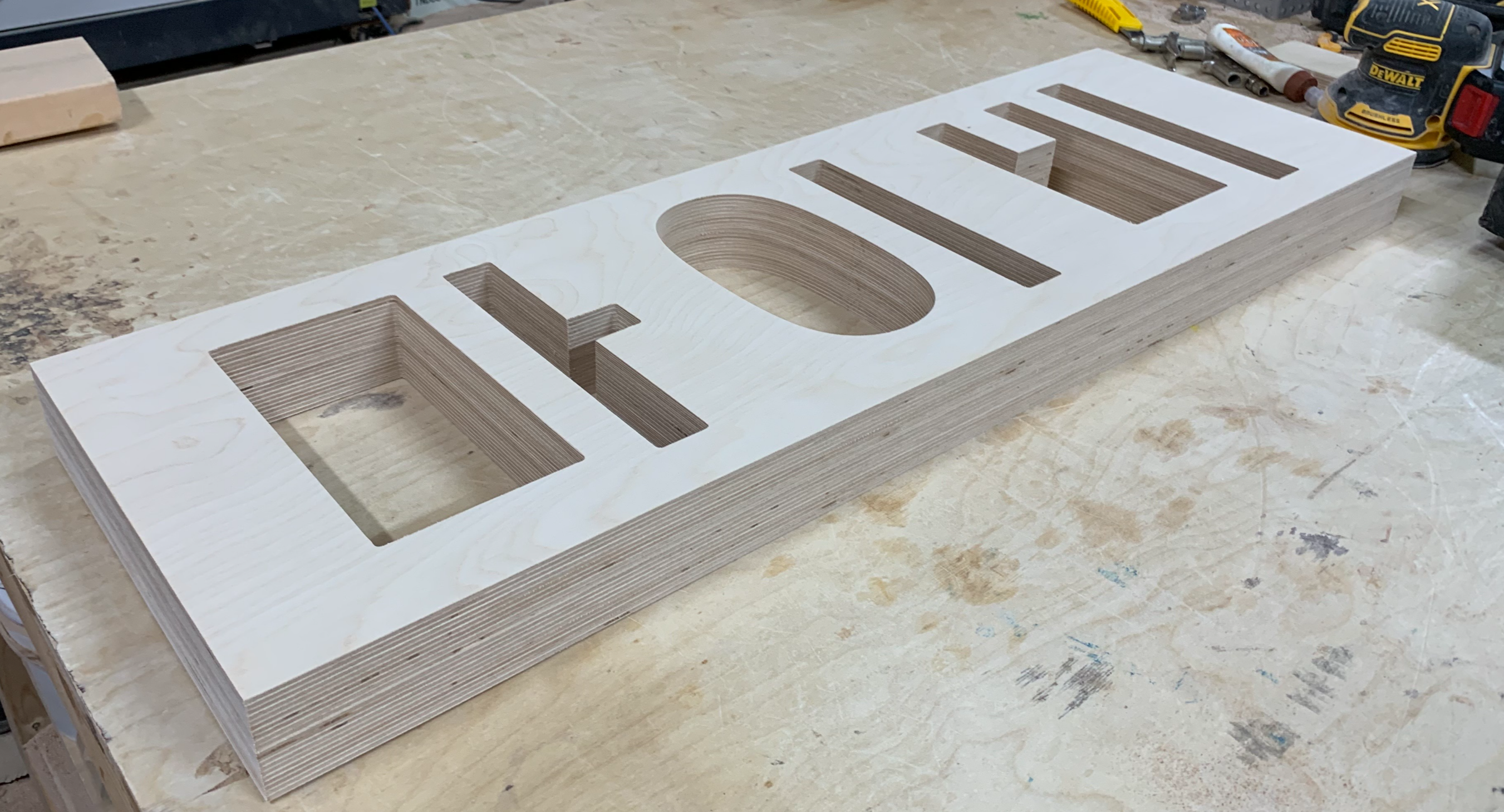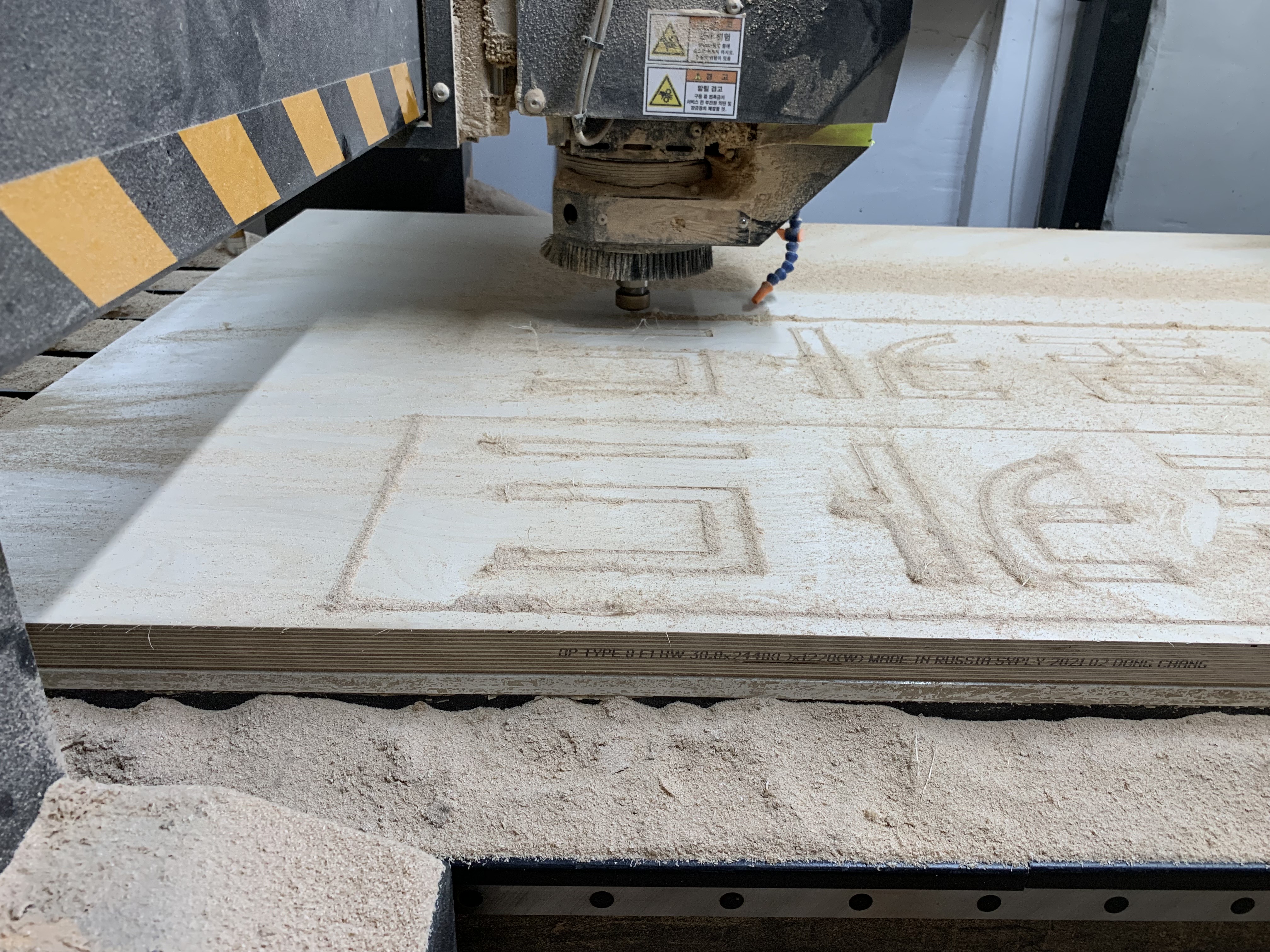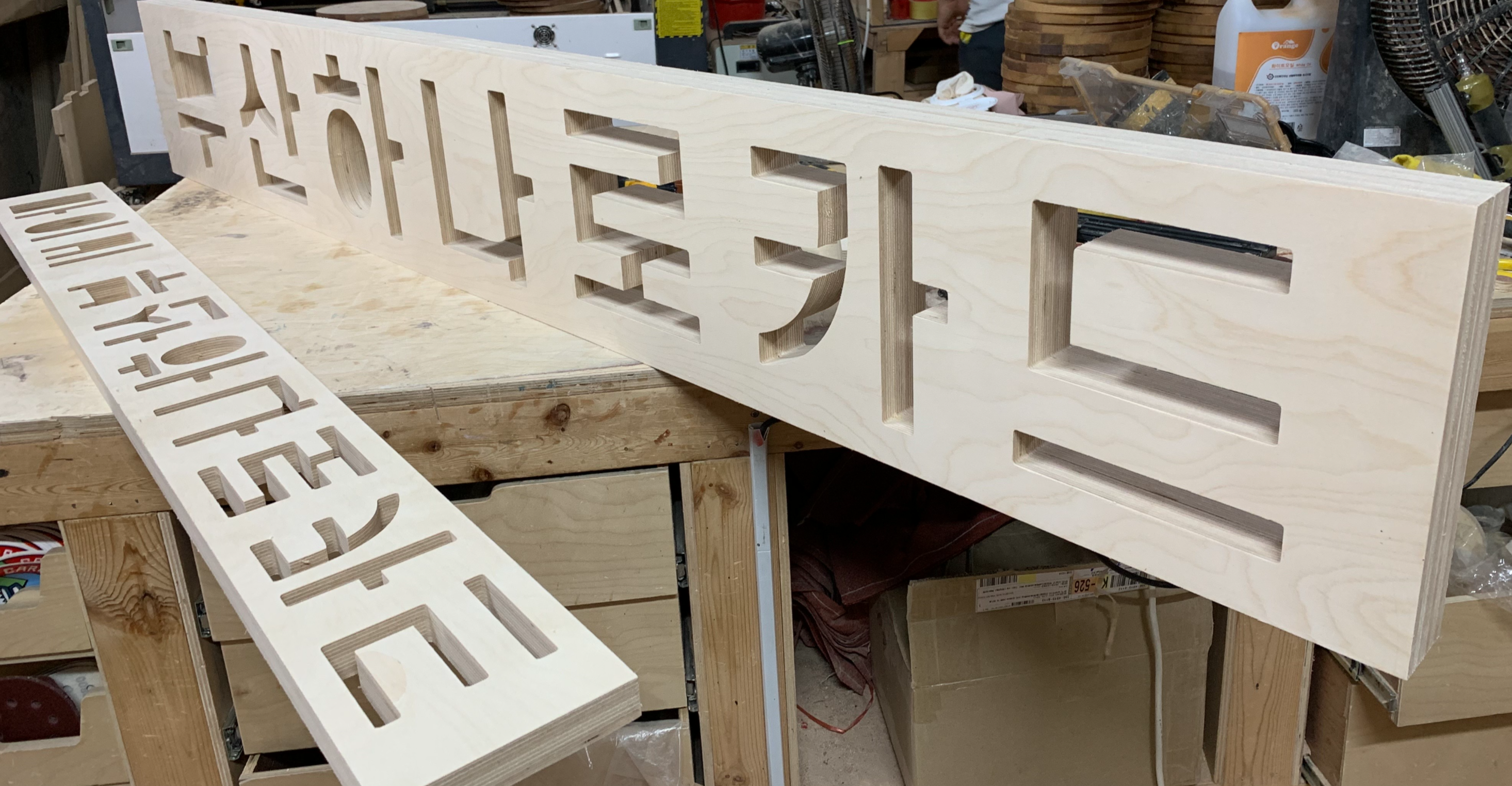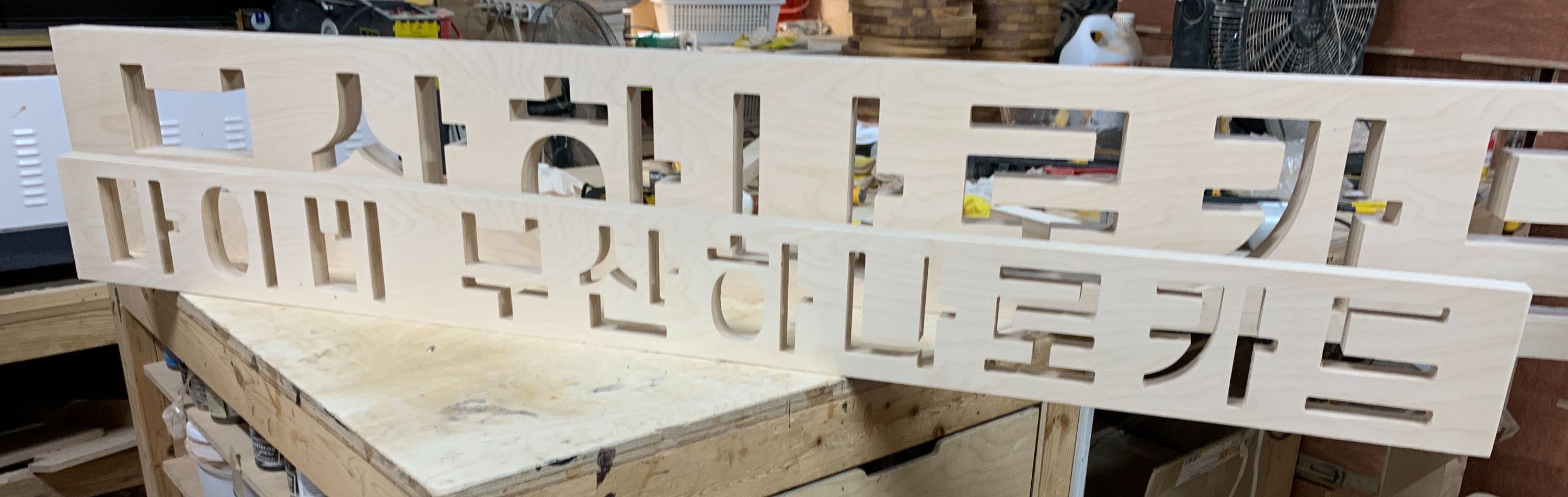 커다란 합판이 가득찰 만큼의 큼직한 글자로 디자인을 하셨습니다!