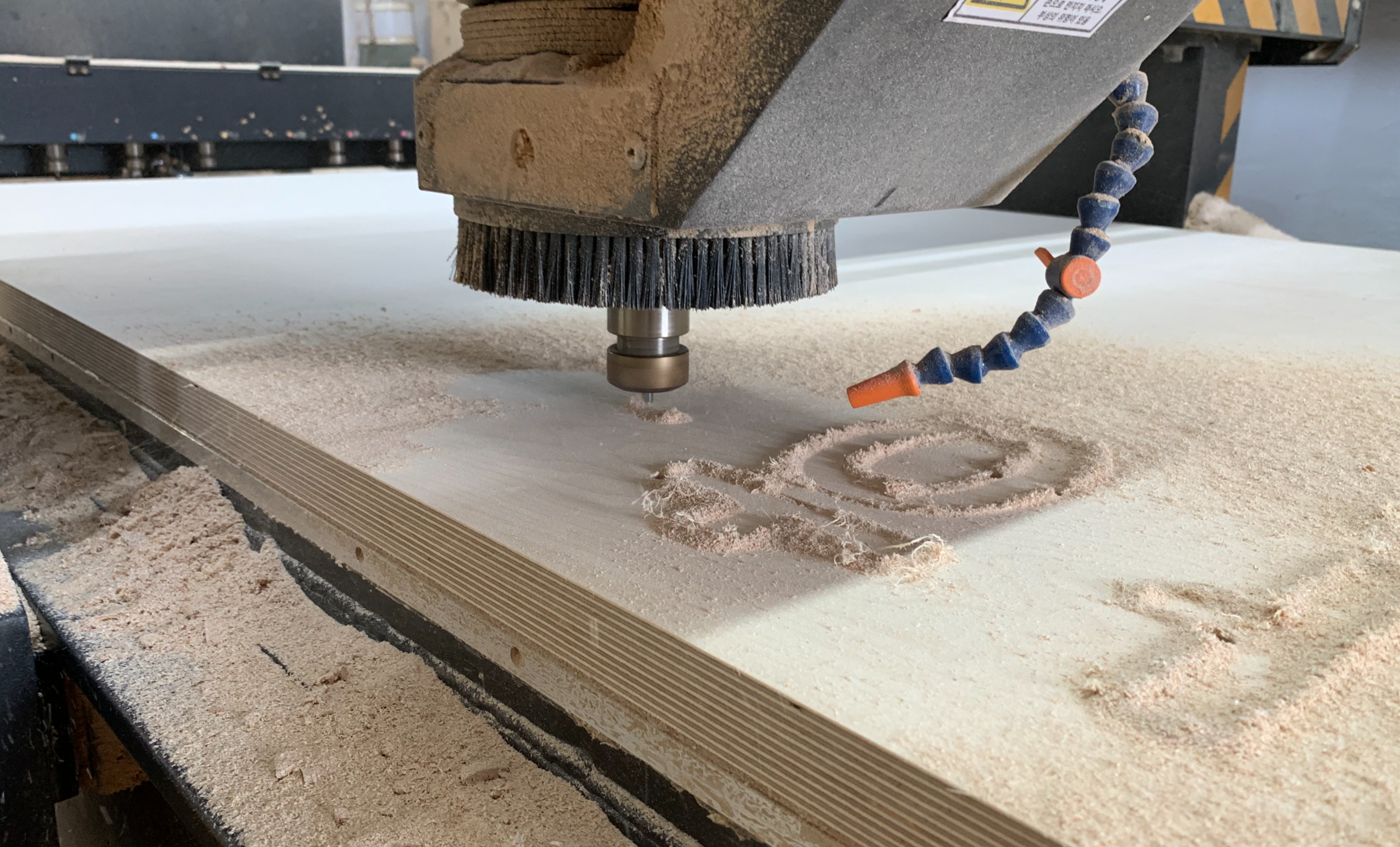 나무에 음각을 넣어 이니셜을 만들고 있습니다 (^^)