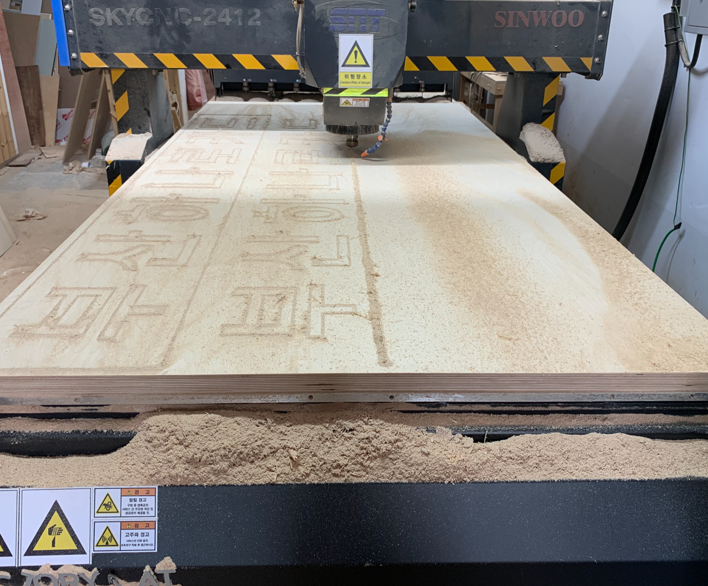 커다란 합판이 가득찰 만큼의 큼직한 글자로 디자인을 하셨습니다!