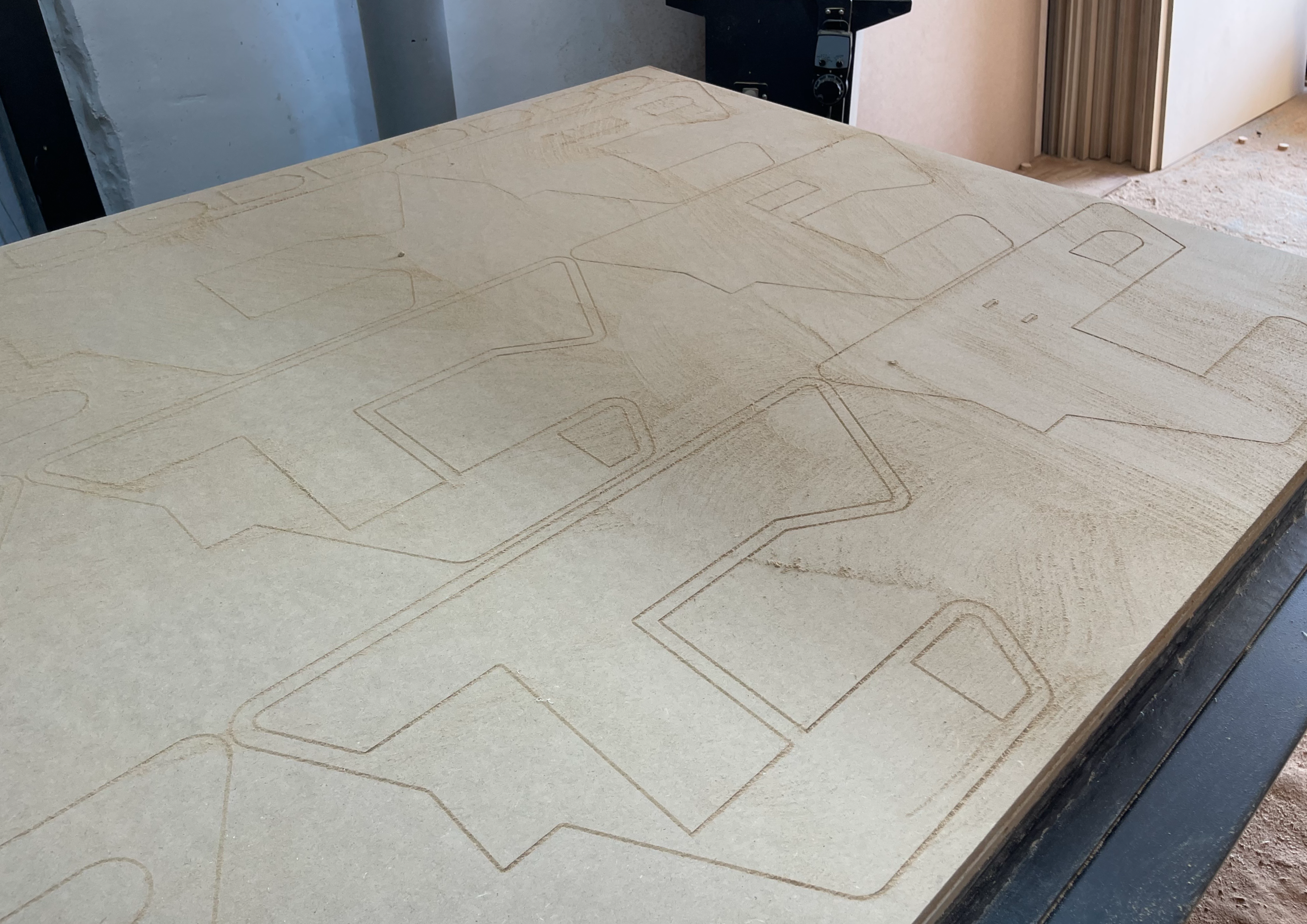 합판을 가득 채워서 가공을 완료 하였습니다!