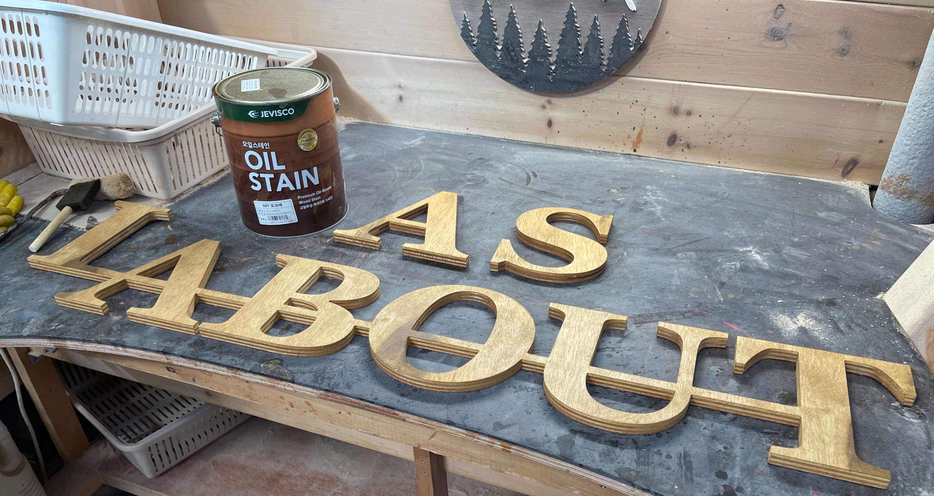 글자 스카시 나무간판