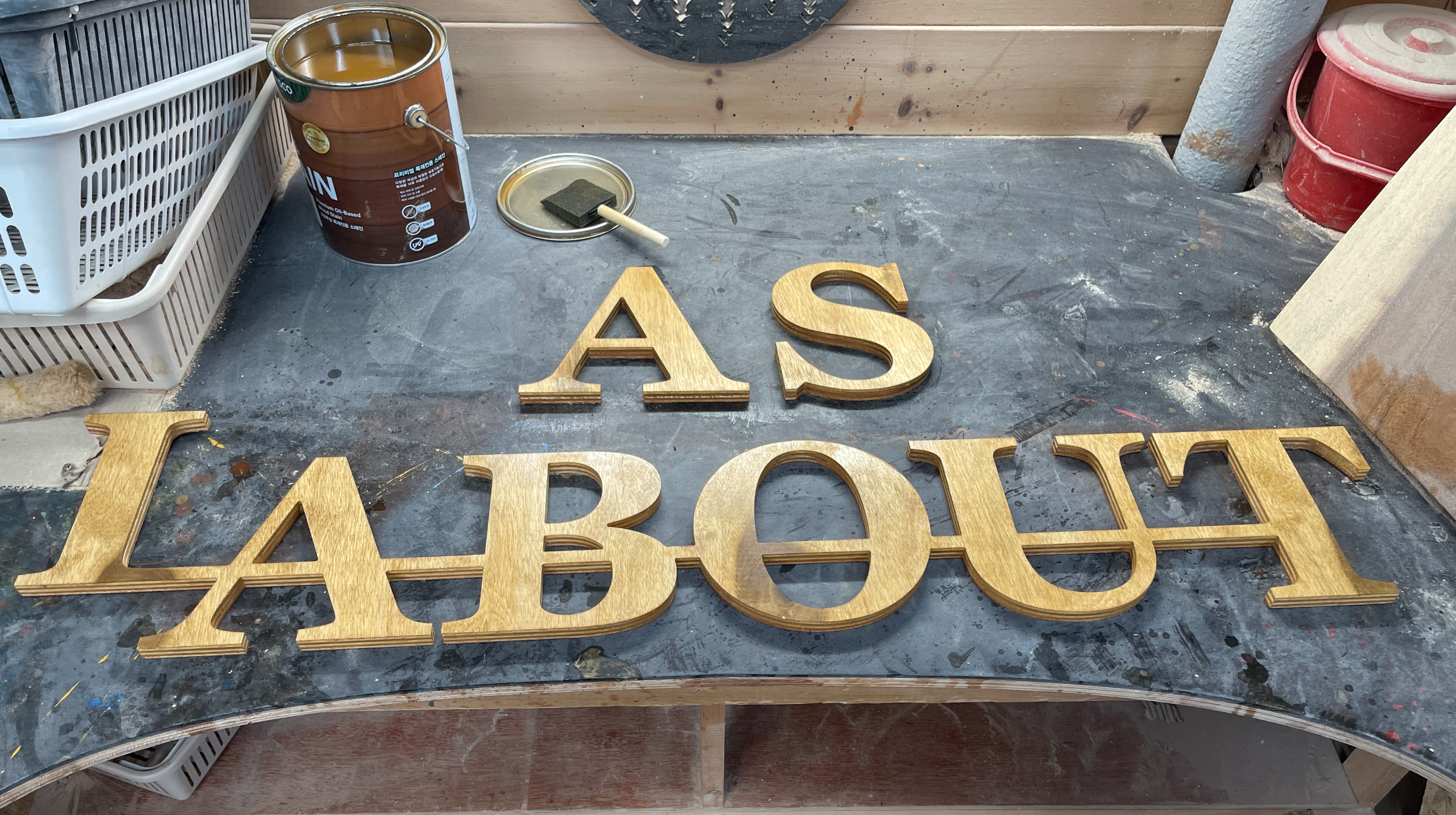 일반 나무합판에다가 컬러감이 있는 오일스테인 사용하여
