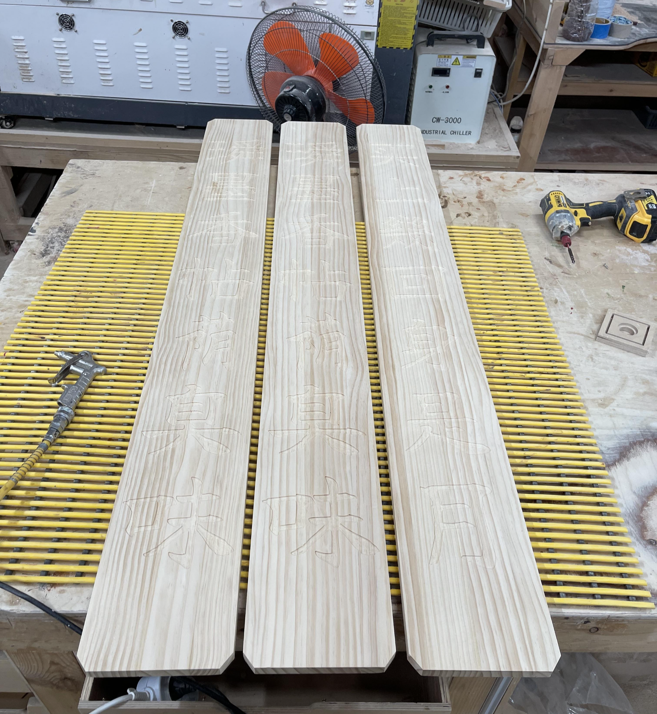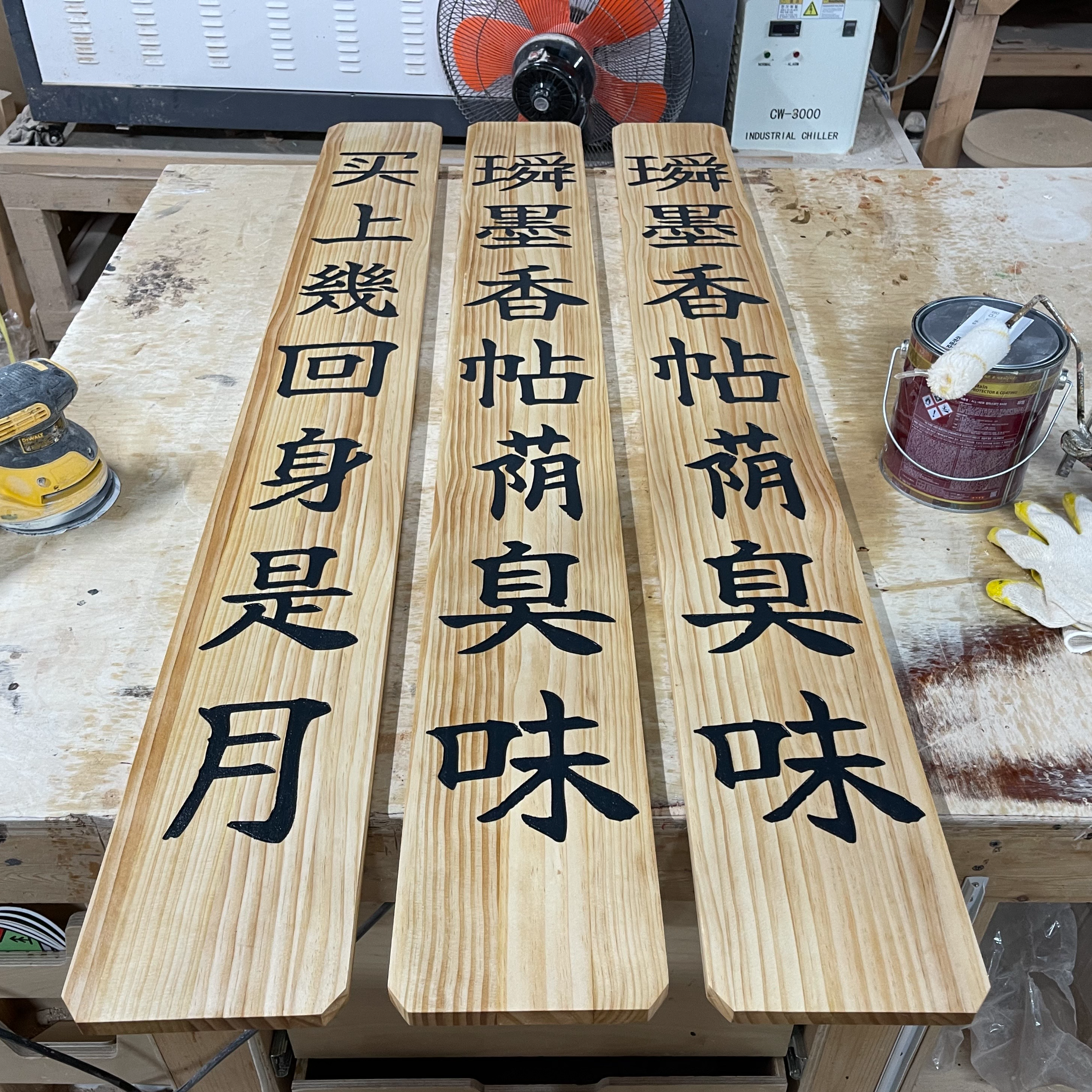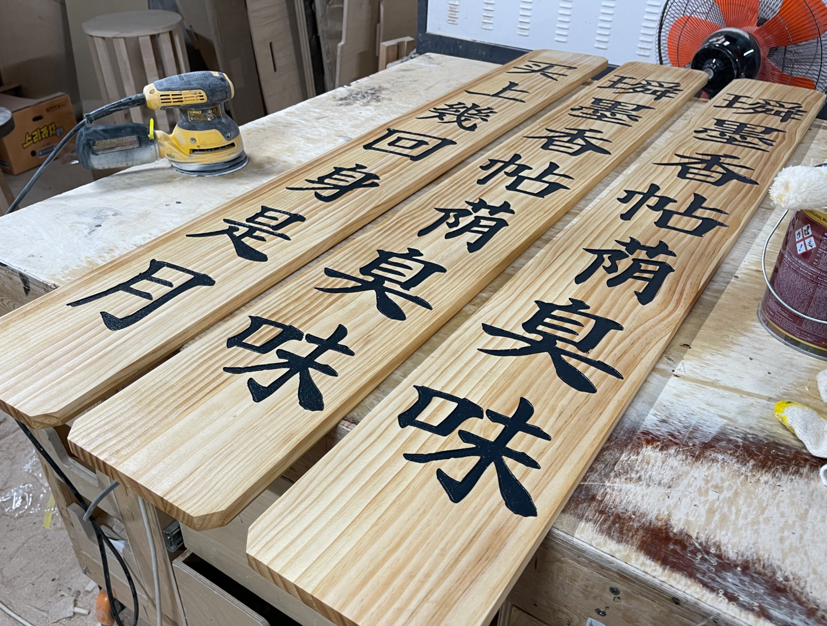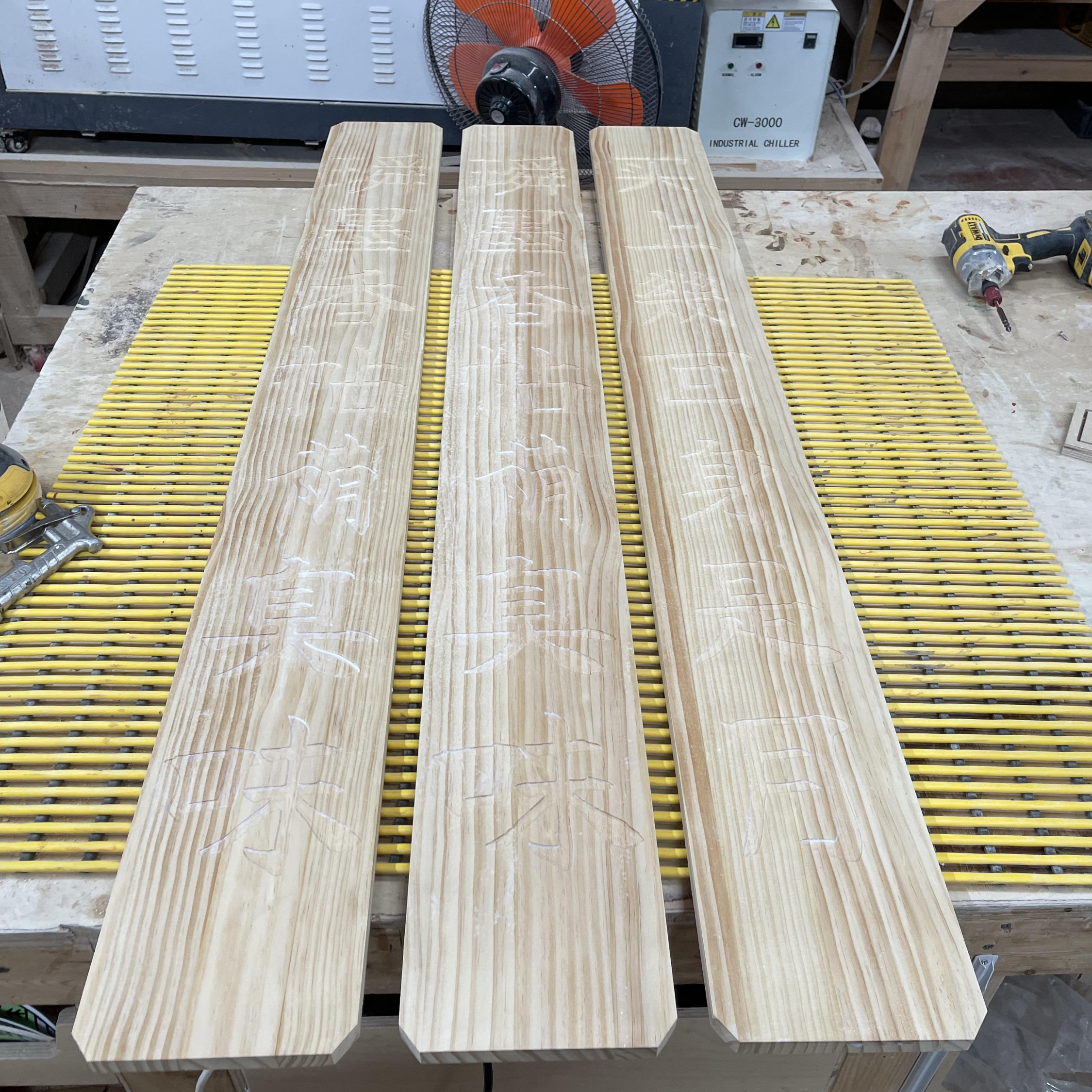 세 개의 멋있는 현판이 작업대에 올라왔습니다.
