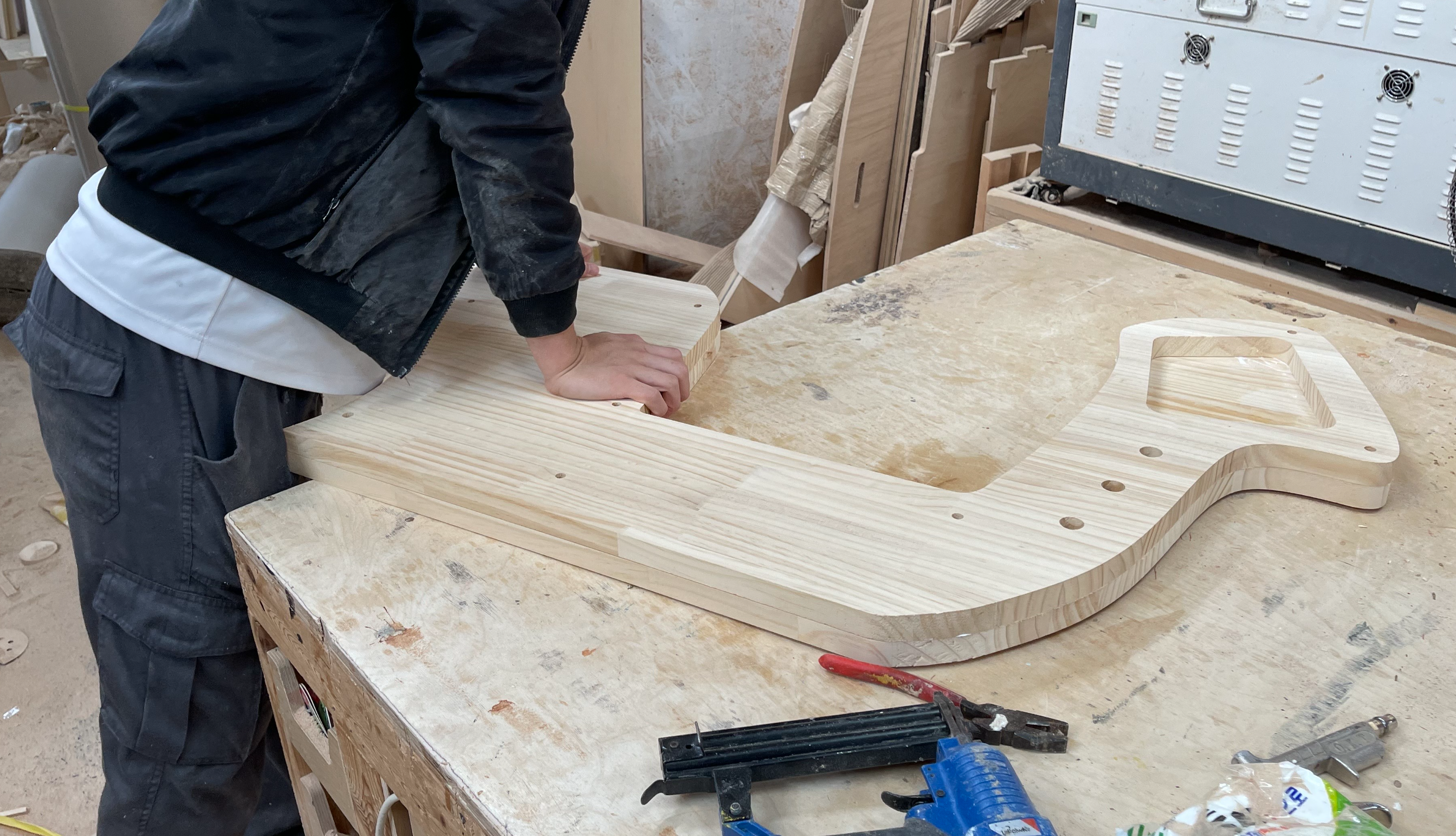 이 과정들을 거쳐 총 5개의 소나무집성목을 붙여주면