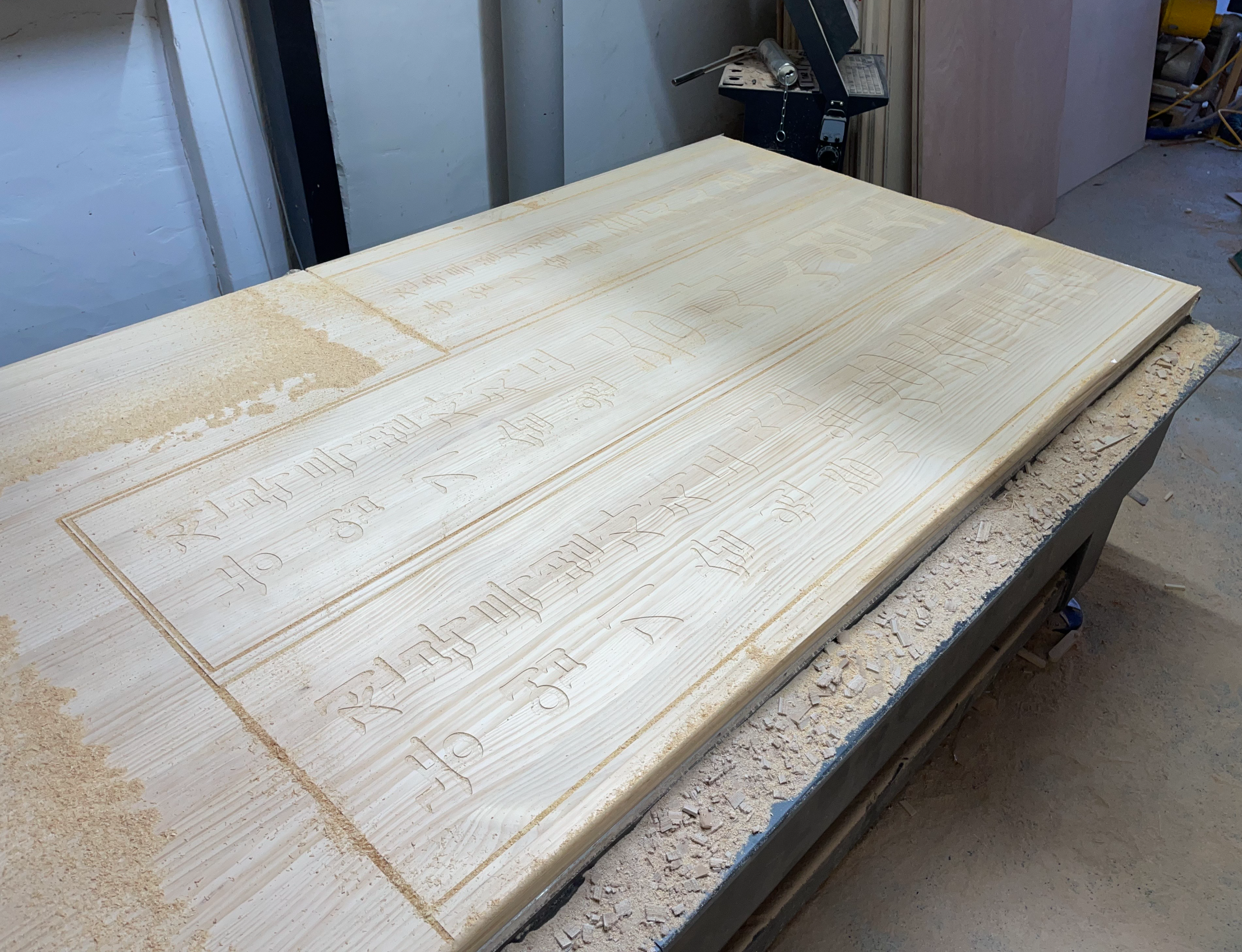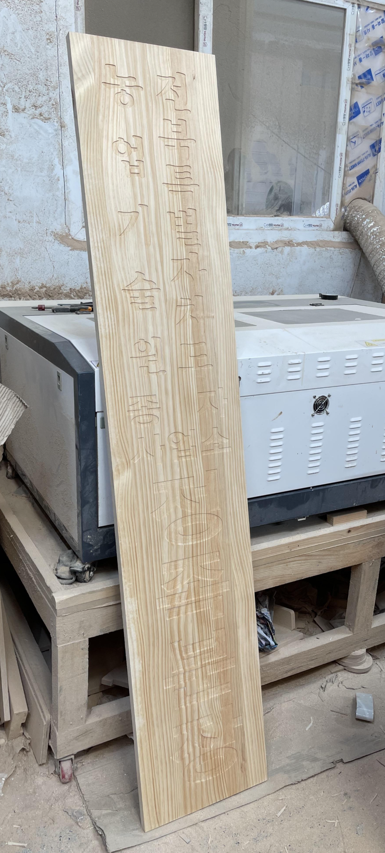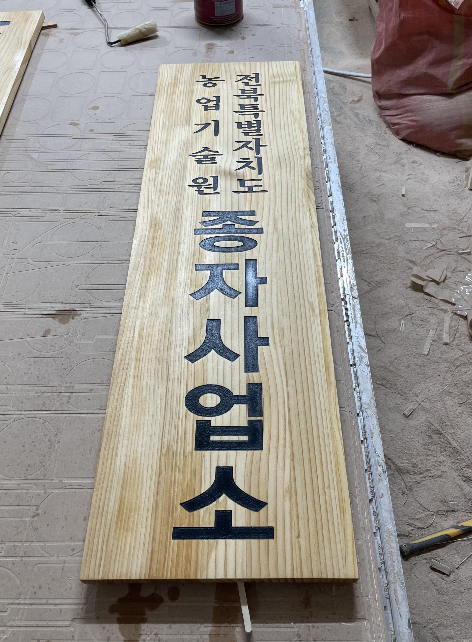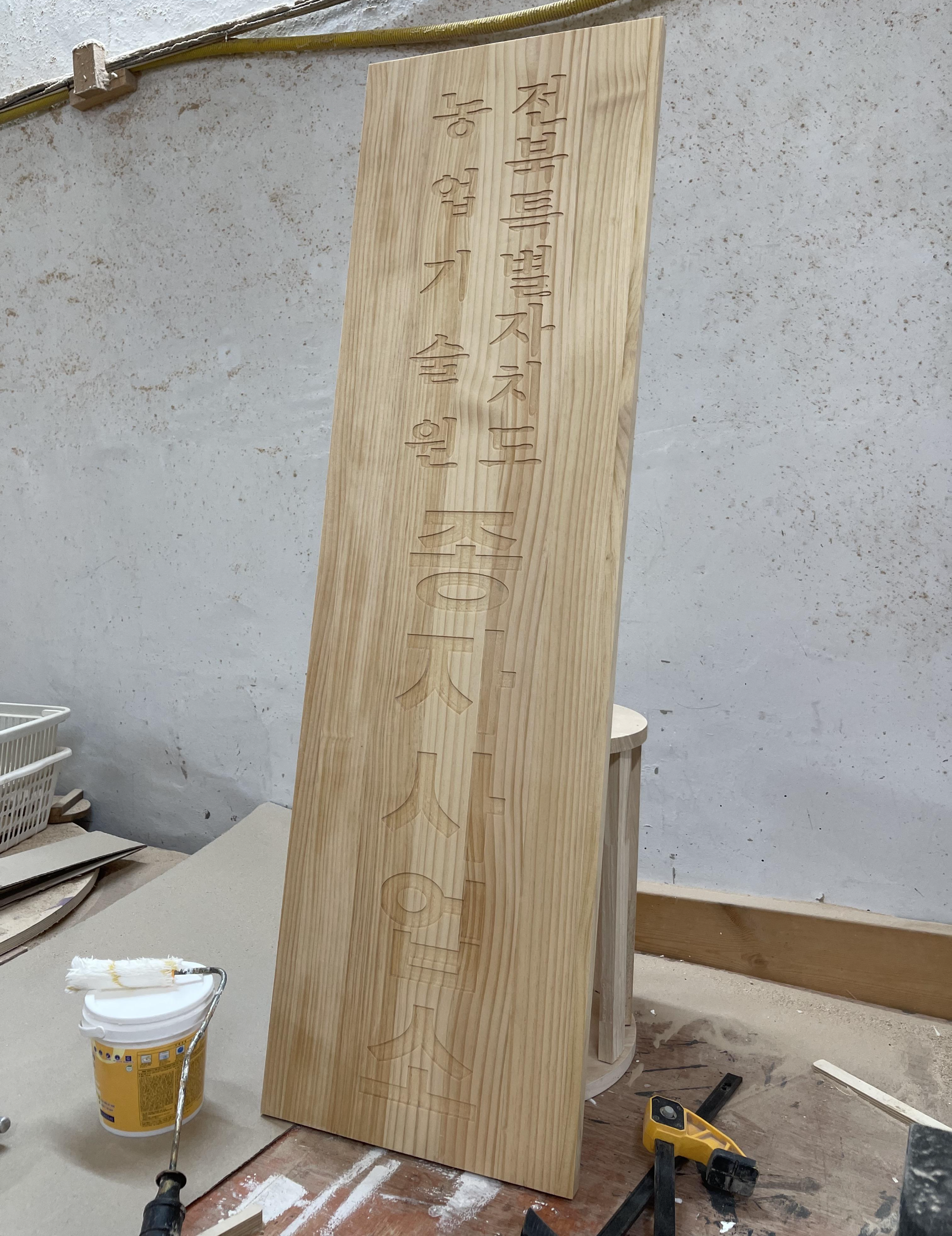 깔끔하게 가공 완료된 현판에