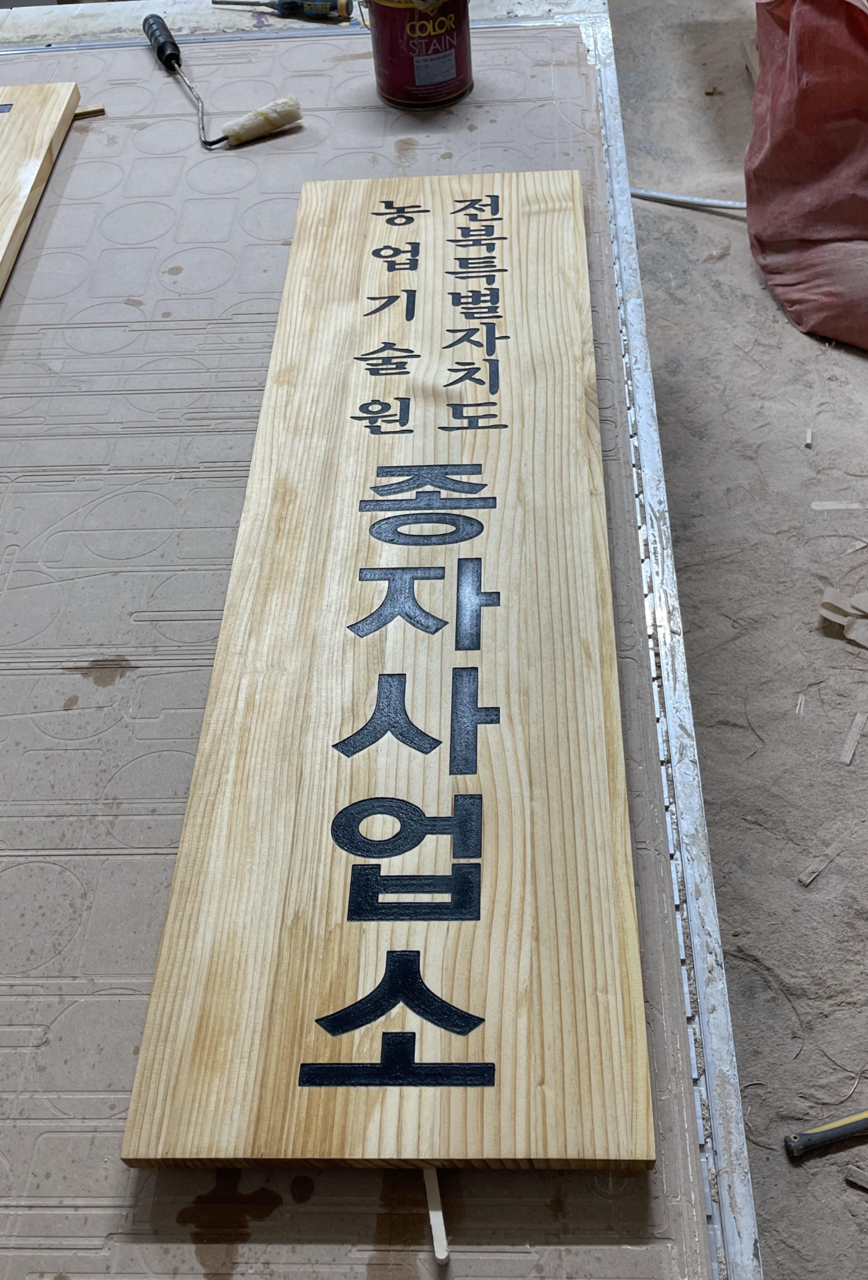 깔끔하게 가공 완료된 현판에