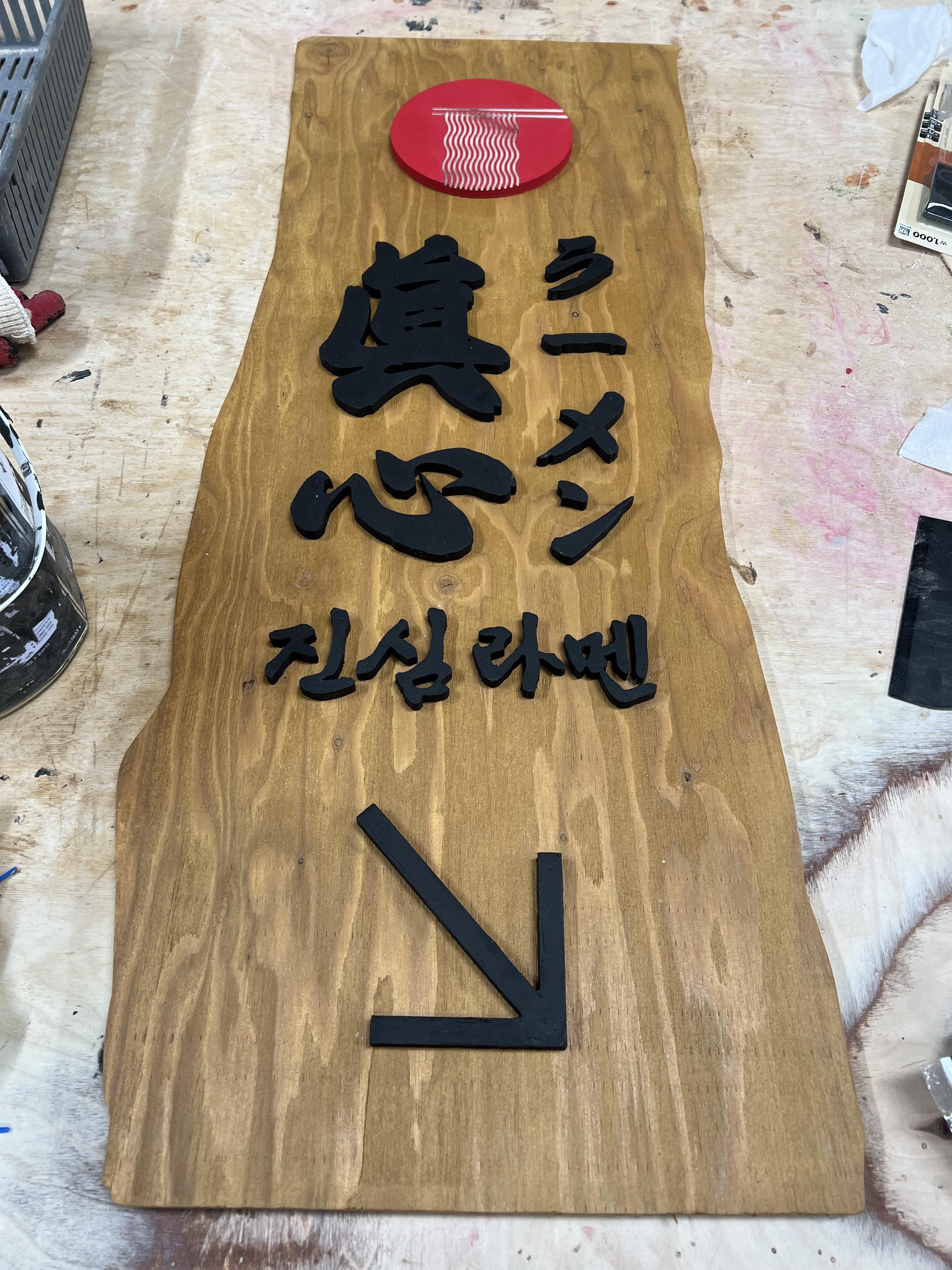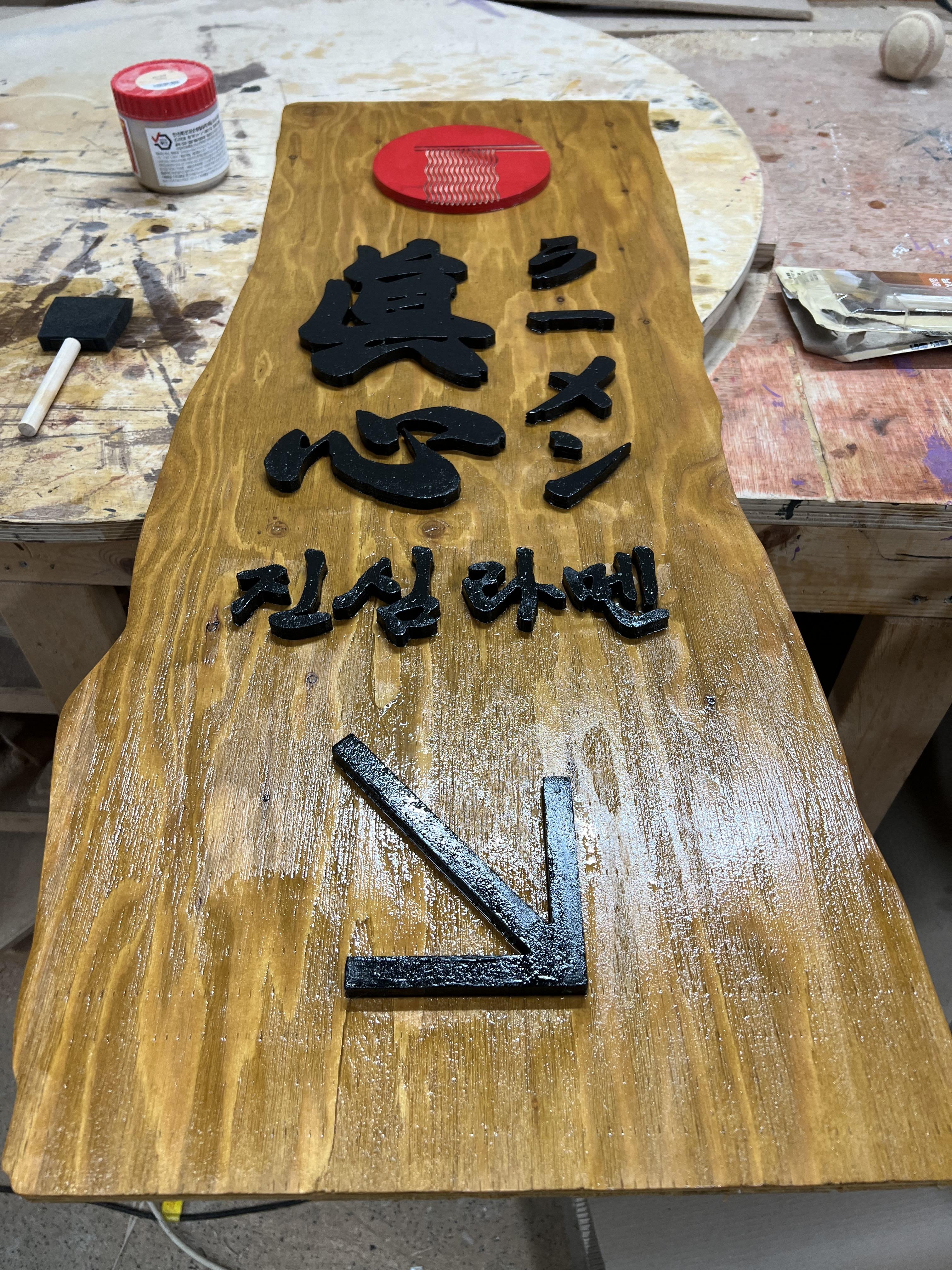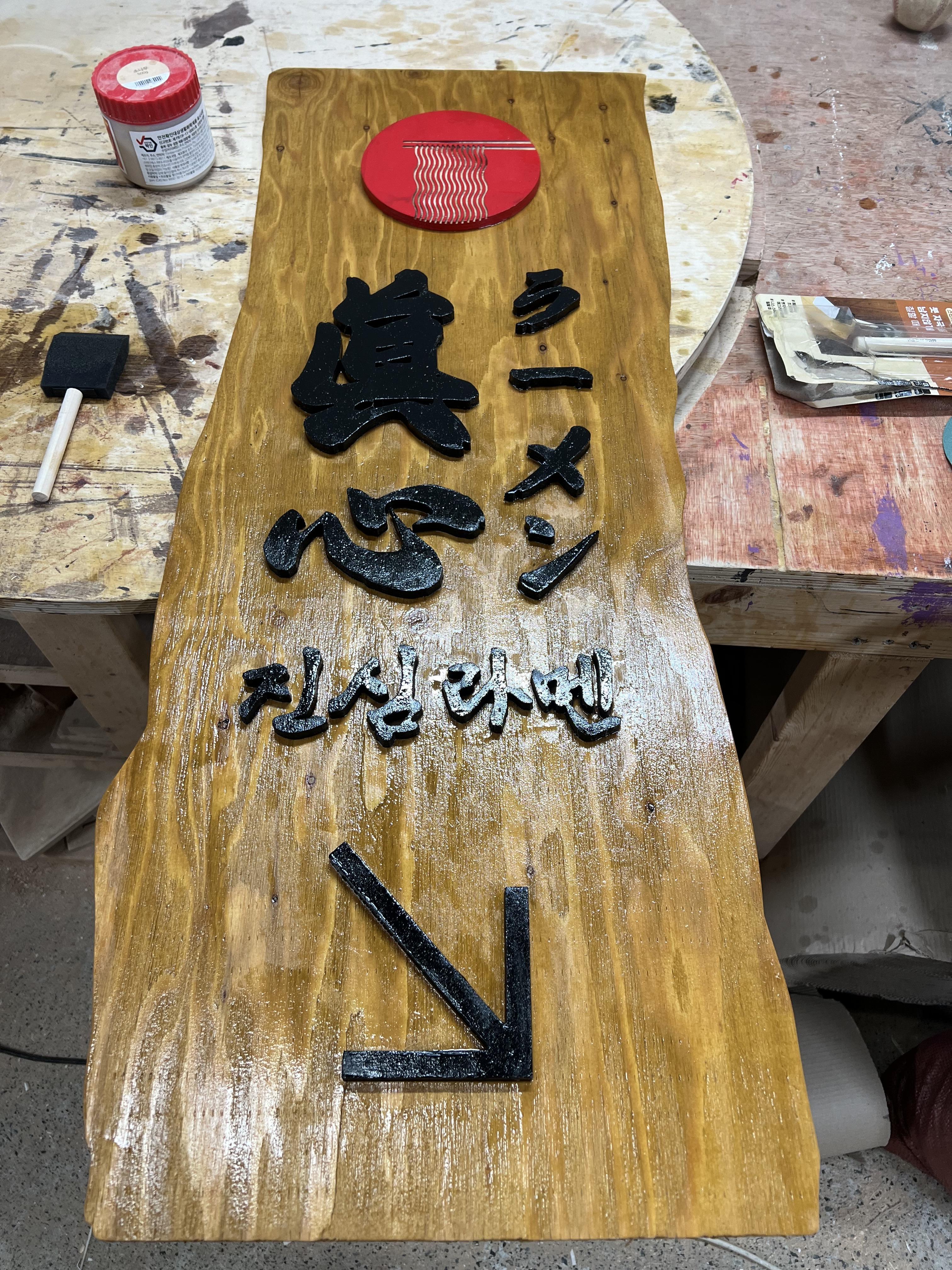 라멘 가게 나무간판을 만들어보았습니다.
