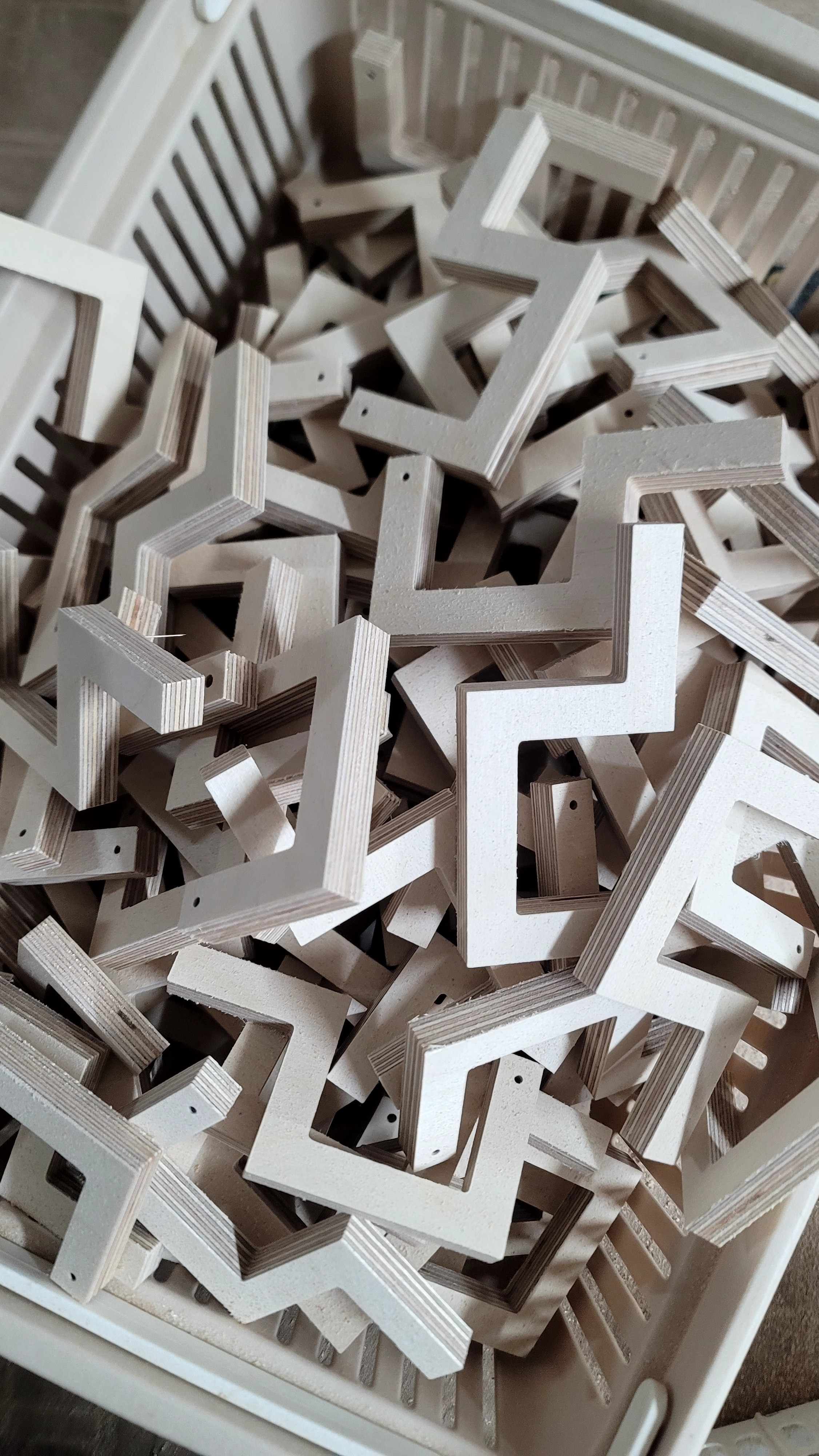 가운데 엮은 실이 중간 지지대 역할을 하게하여 공간을 지탱하게 됩니다.
