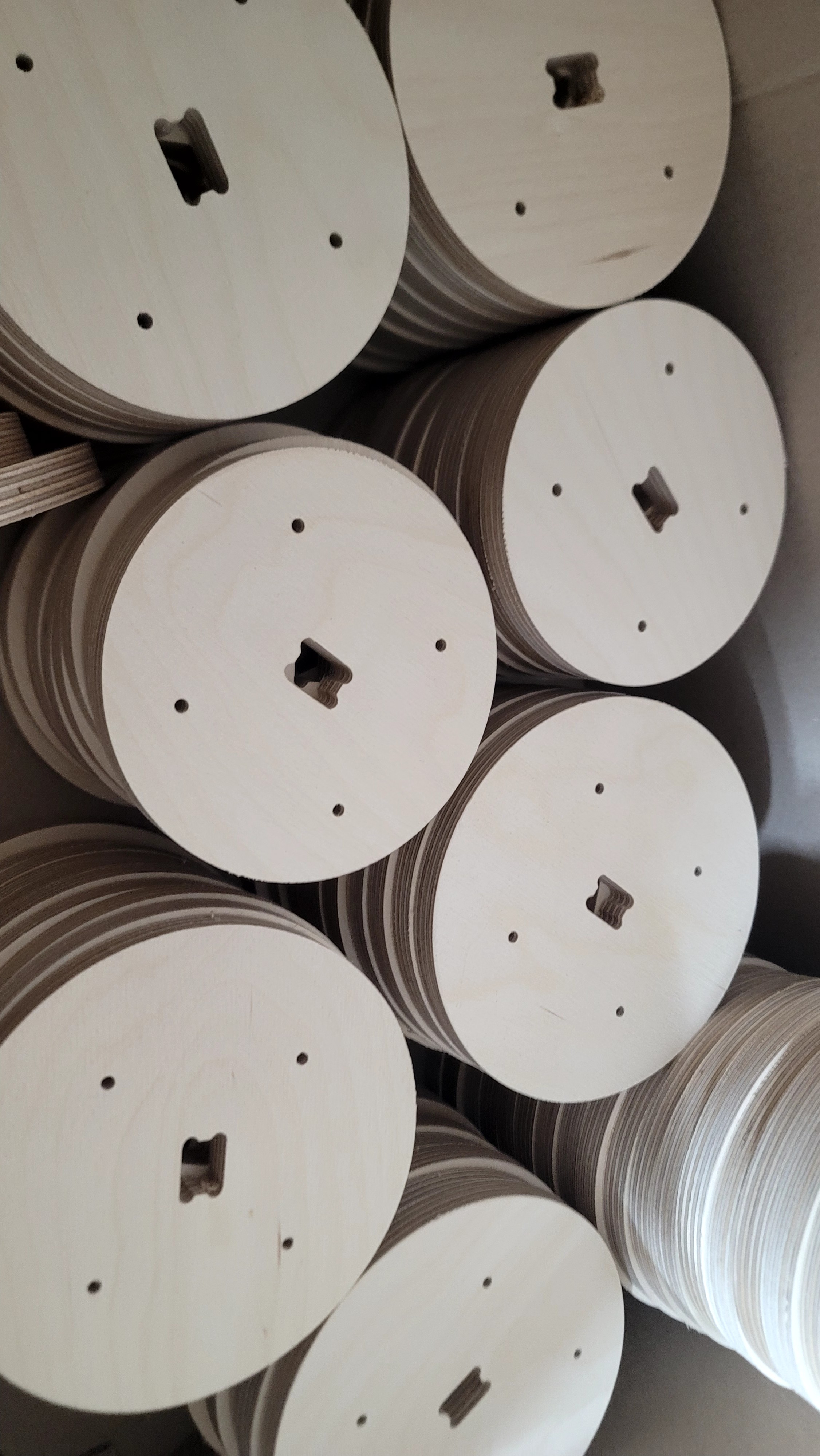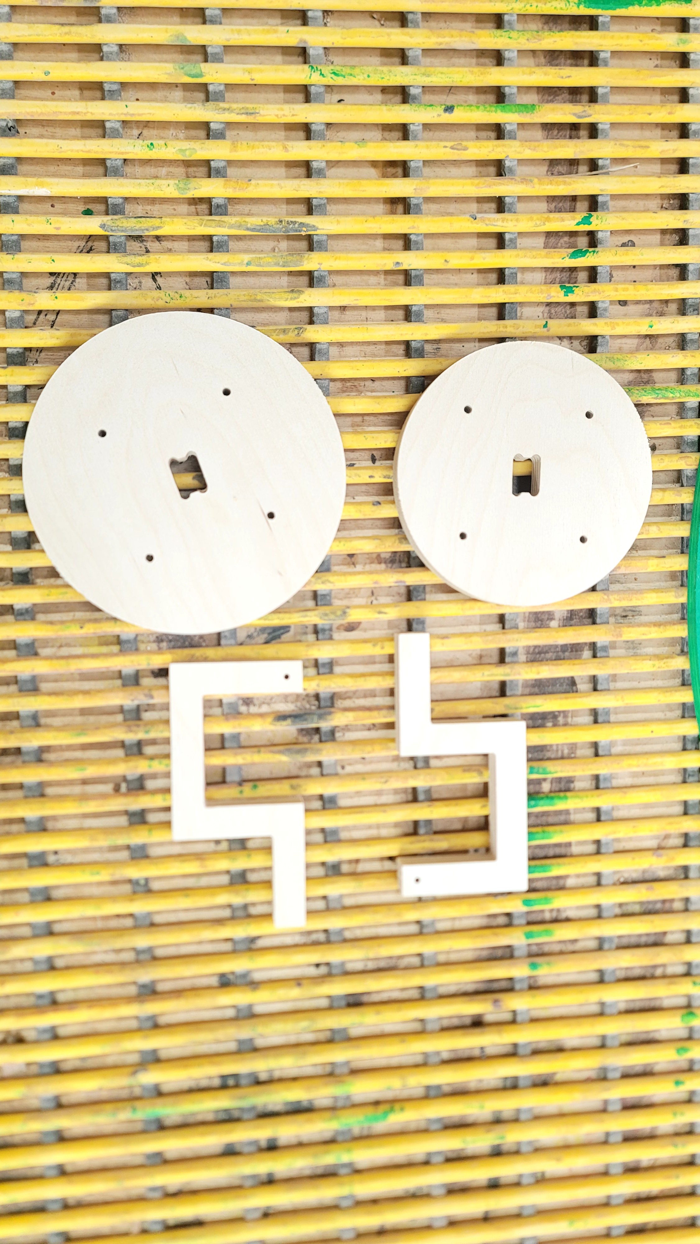 원판에 뚫린 4개의 구멍에 줄을 넣어