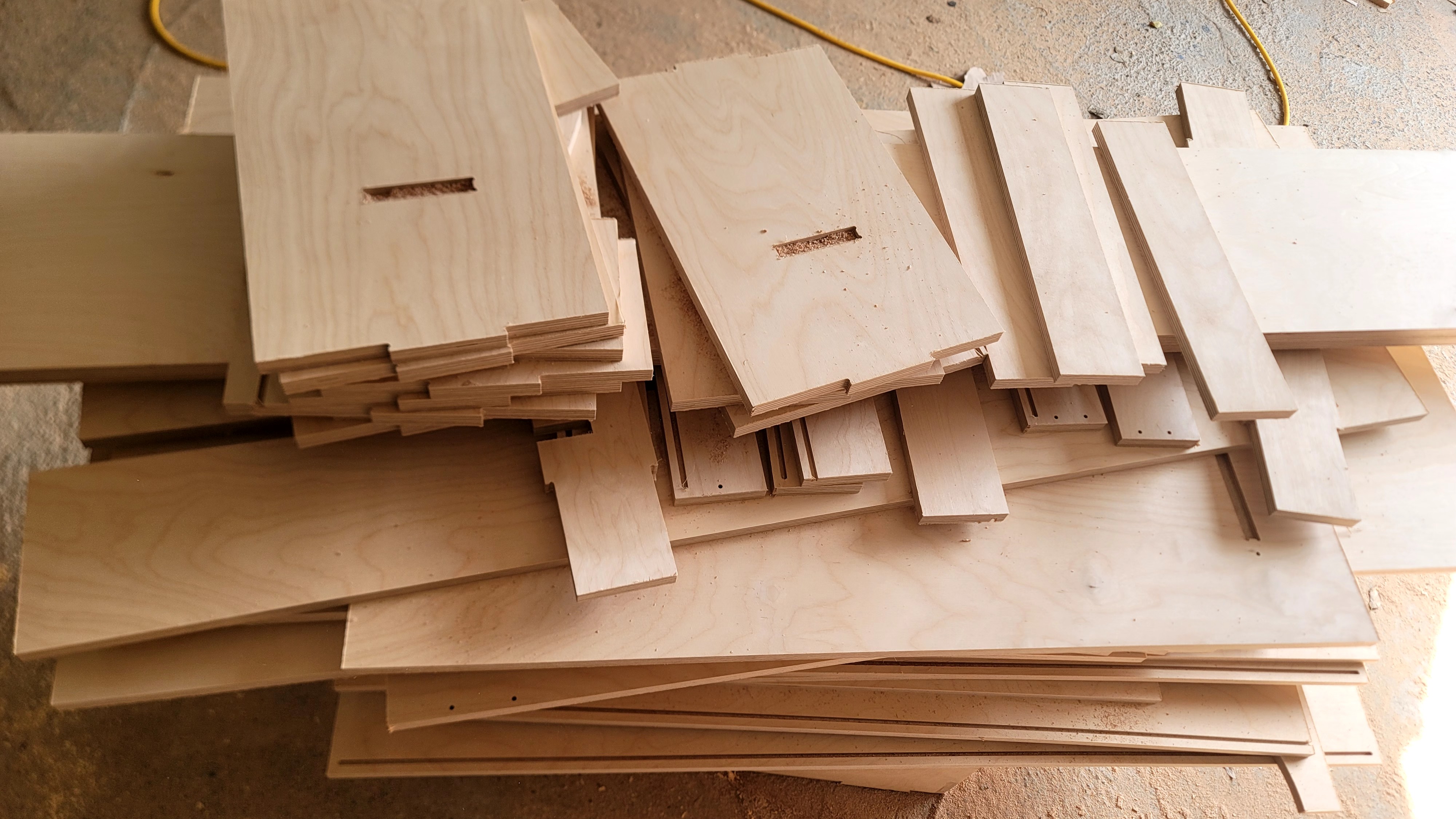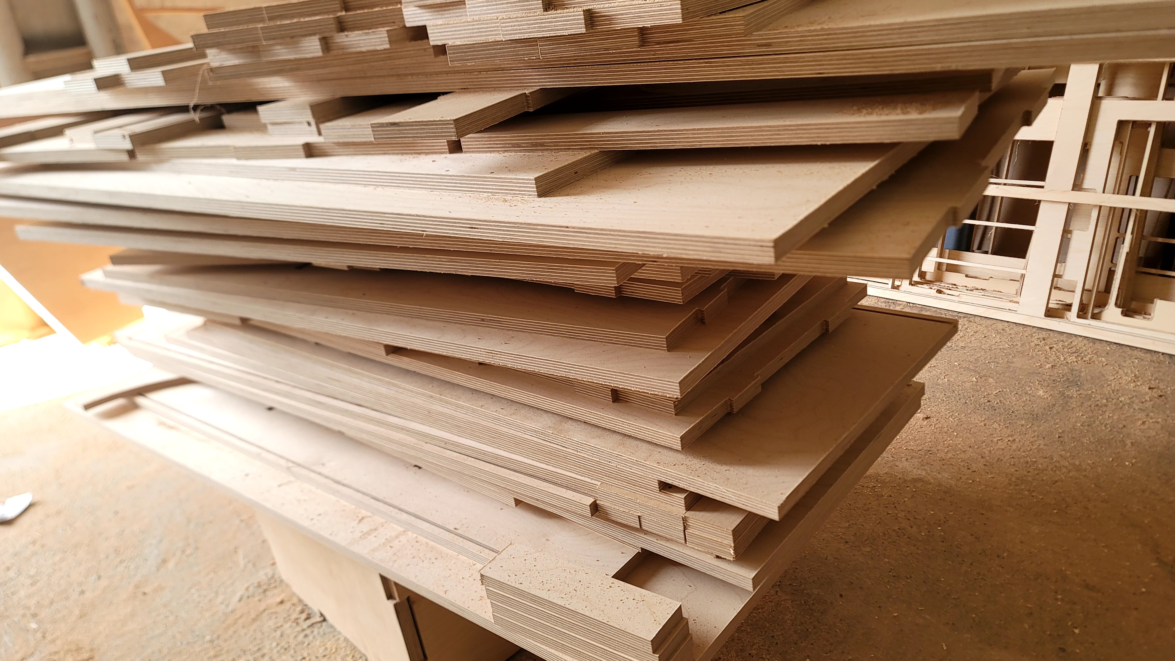자작나무 15t 를 사용한 합판 재단 중입니다.