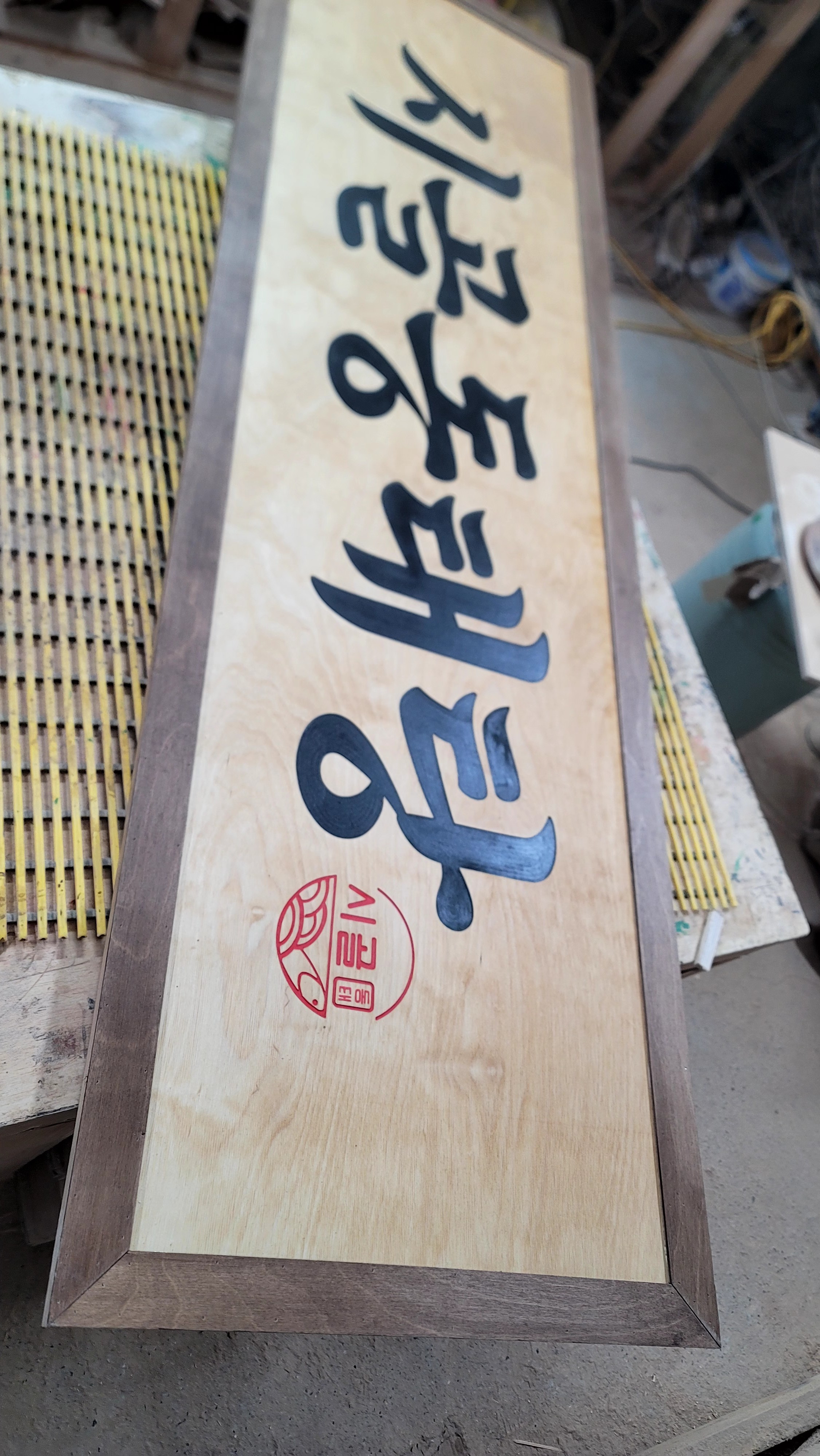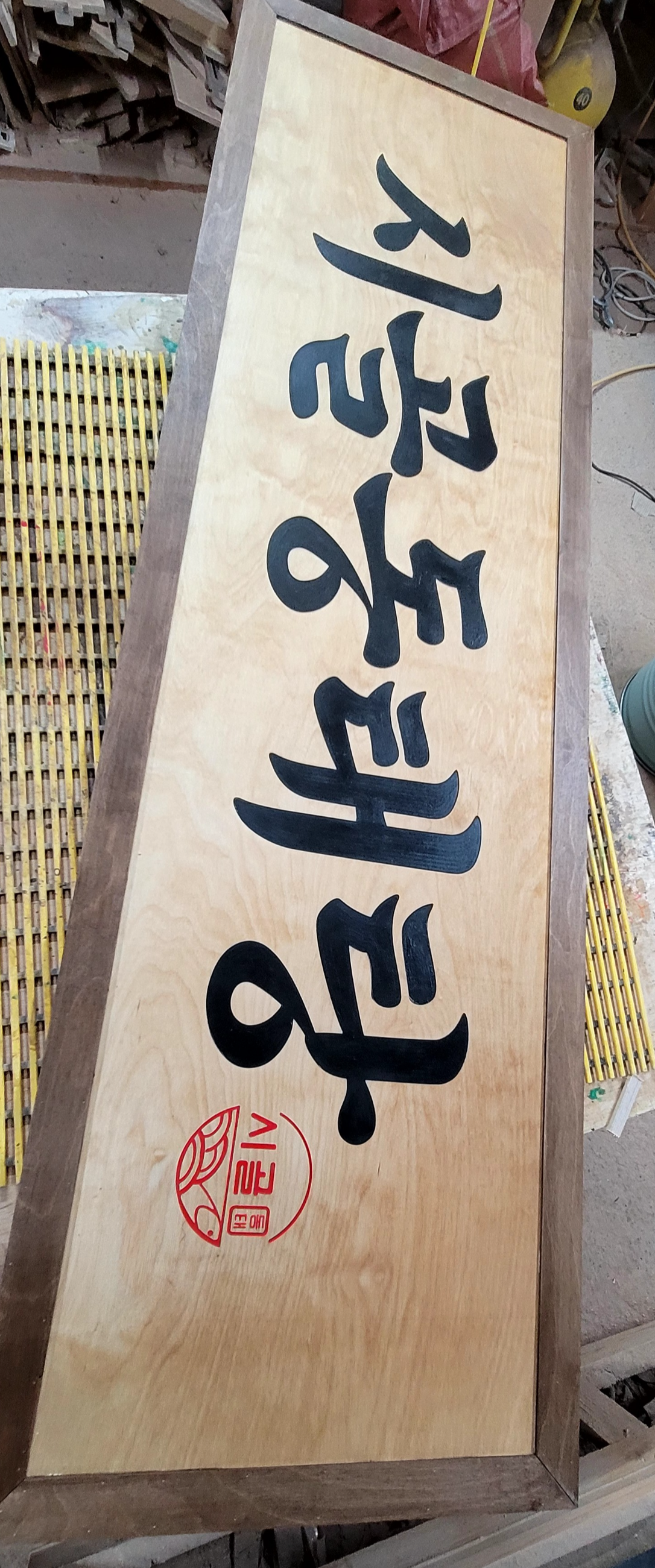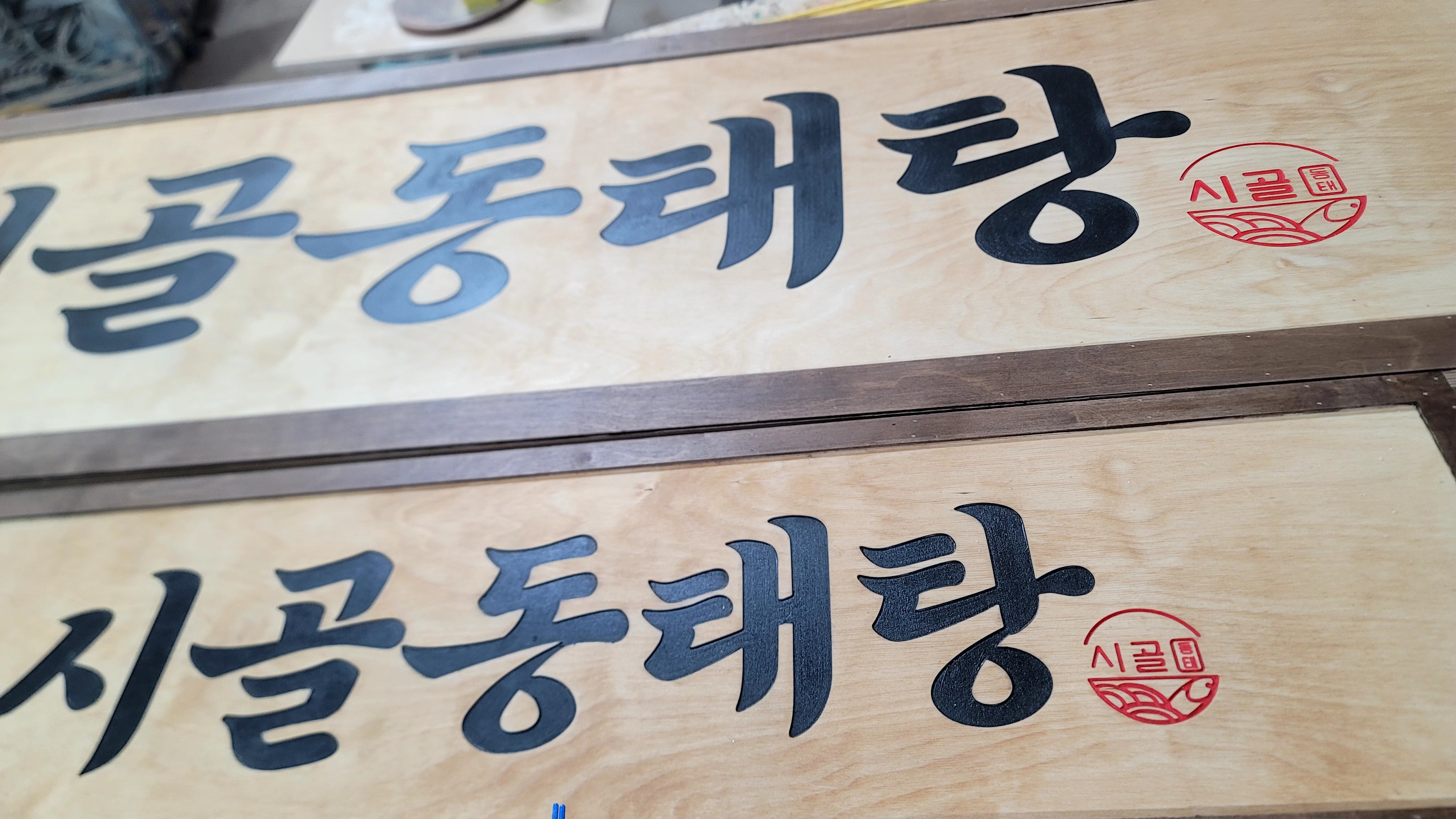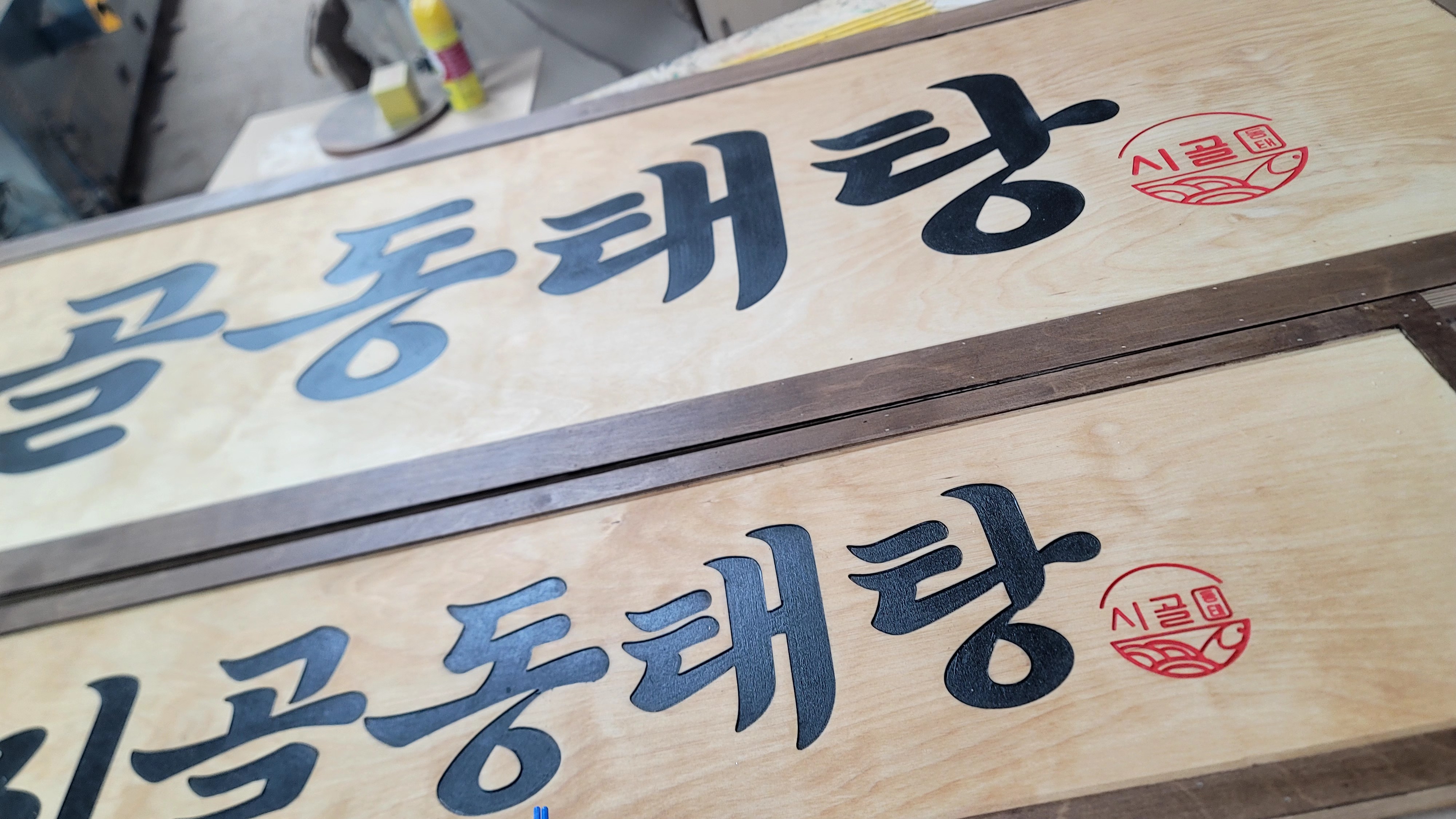 고급 나무라 간판 제작시 단단하고 깔끔한 느낌을 잡아줍니다.