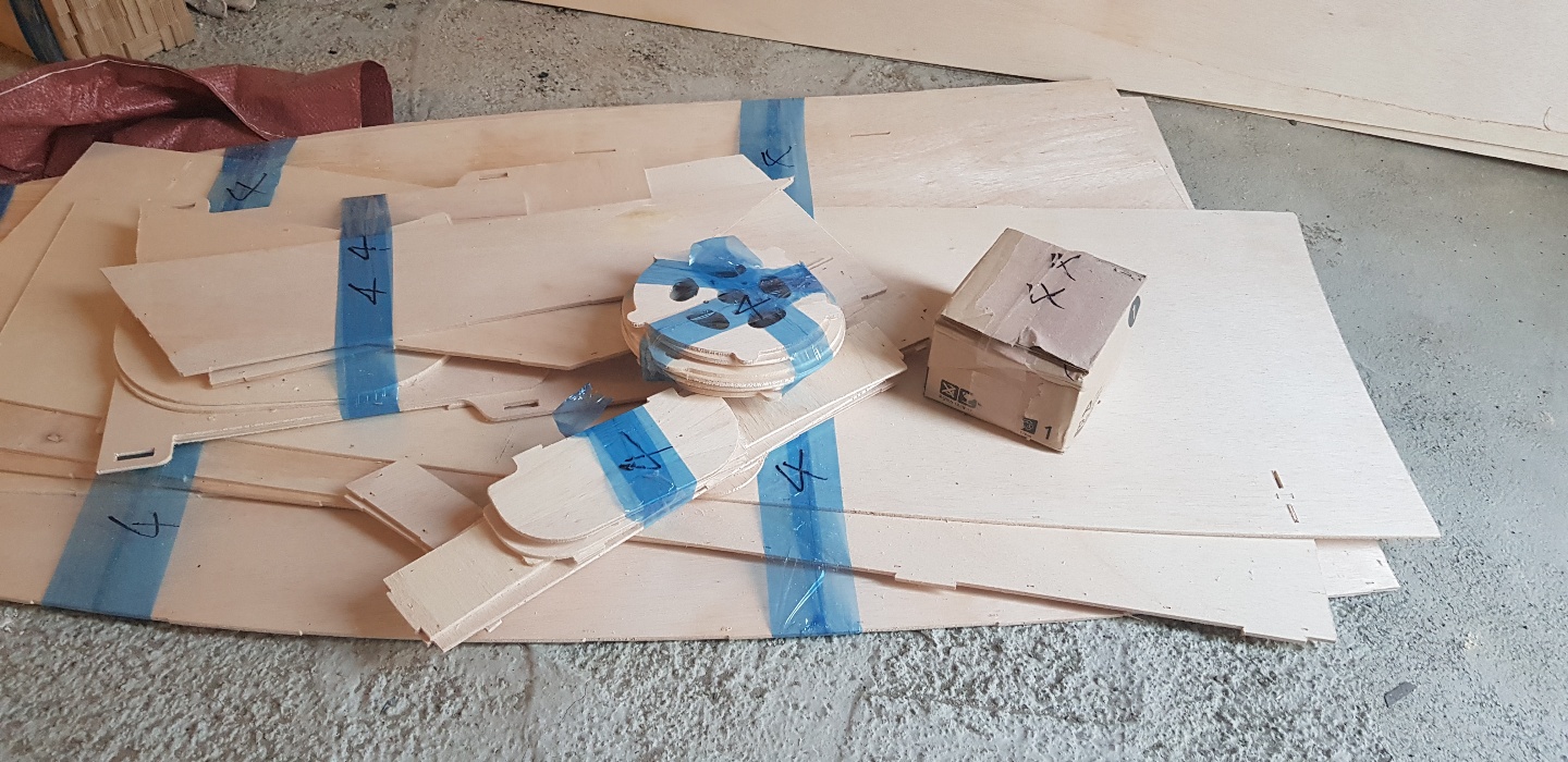 자르고 남은 합판의 남은부분이예요. 딱봐도 정말많은 부품들이 사용된다는걸 알 수 있죠? 아마 DIY 좋아하시는 분들이라면 이런 모양을 보신다면 아마 흥미로워서 관심을 많이 가지실 것 같습니다. 사람이 직접 타는 나무배니까요!