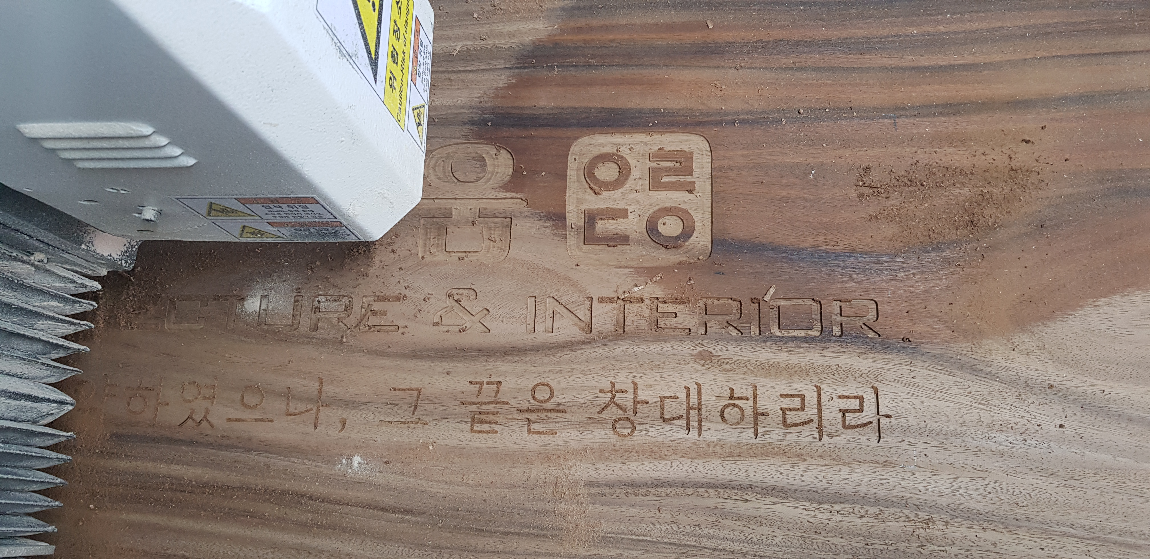 보통 작은 글귀들은 레이저가공을 하는 경우가 많지만