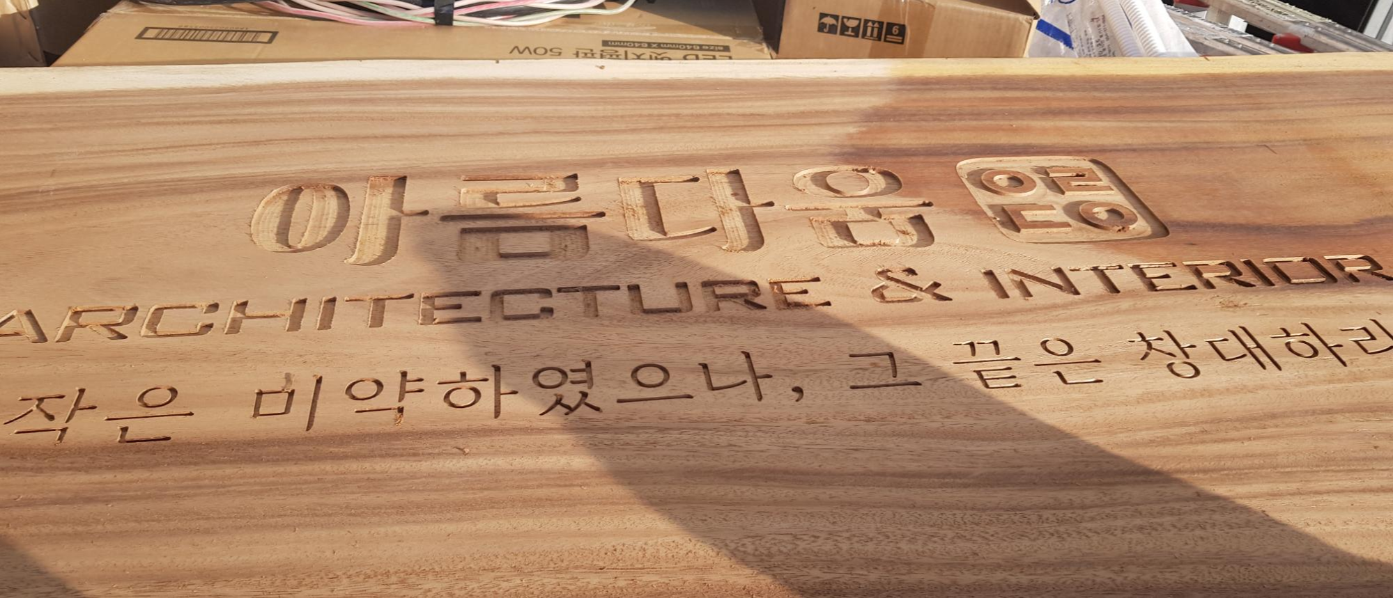 글자를 파내고 나면 우드슬랩 레진작업을 하신다고 하는데 아주 멋있을 것 같아요~>.<